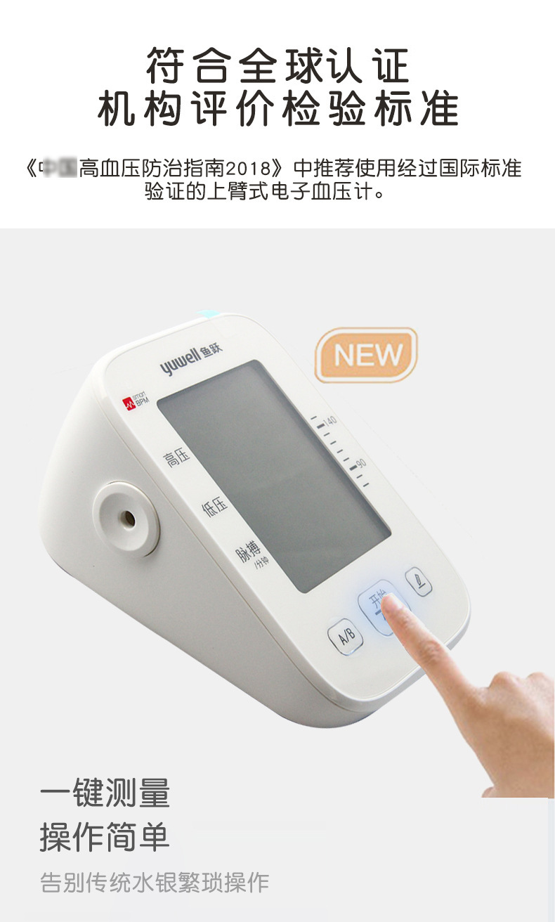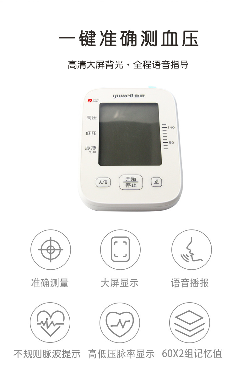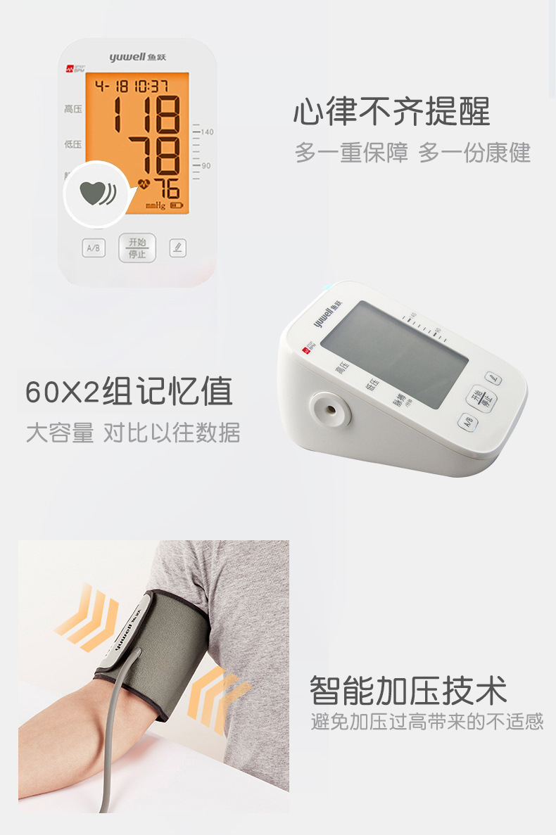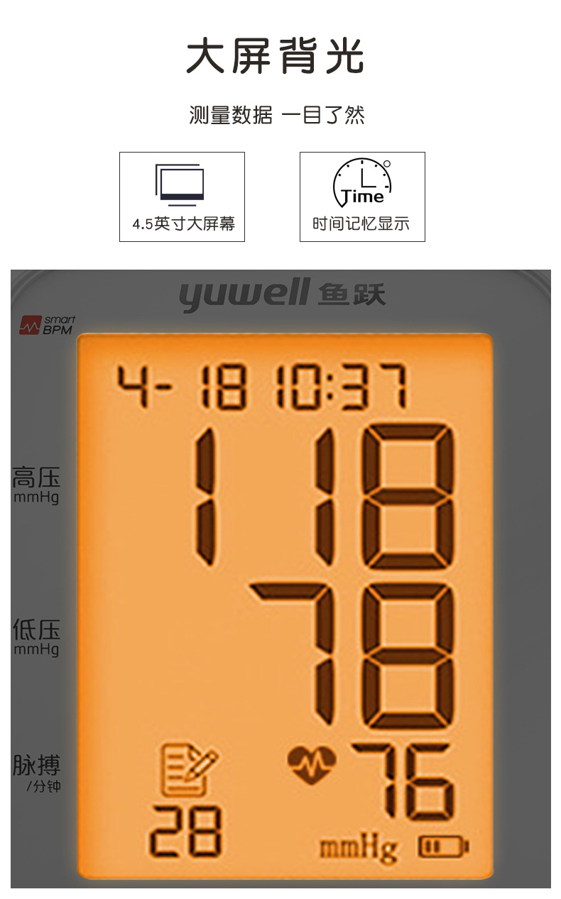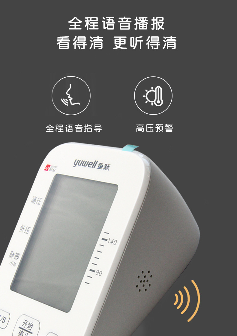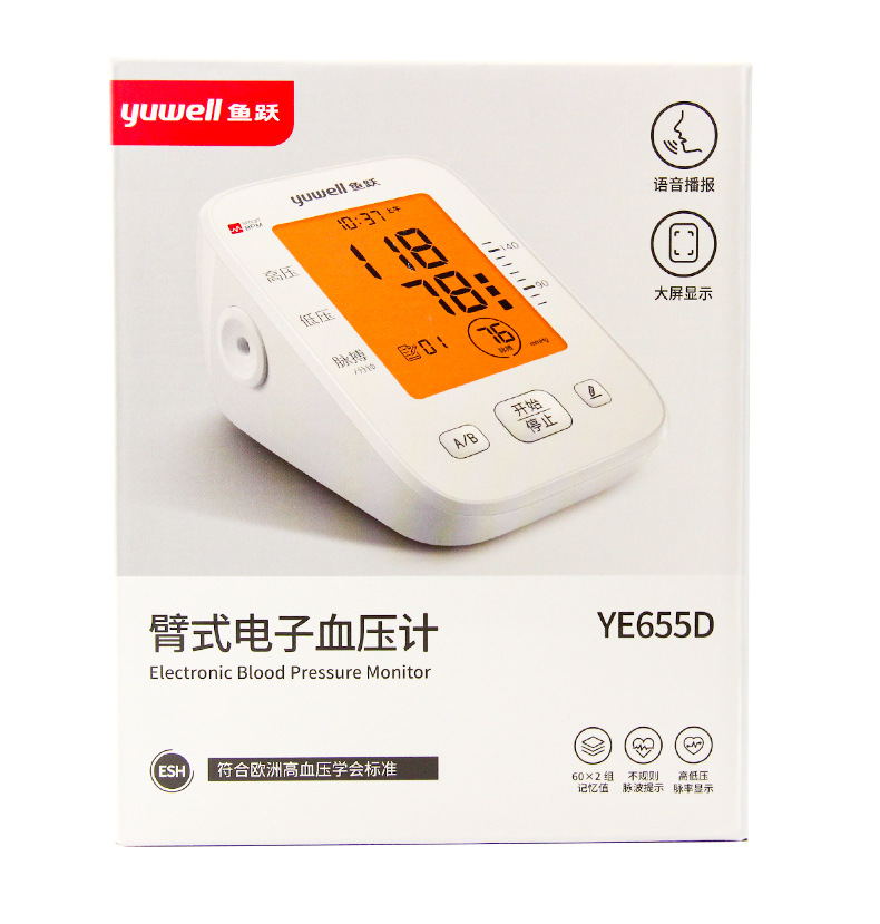 鱼跃YE655D语音背光播报血压计臂式医用家用智能电子血压测量仪批