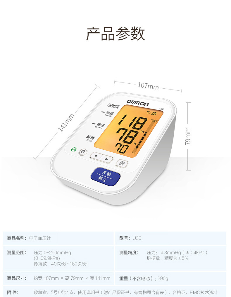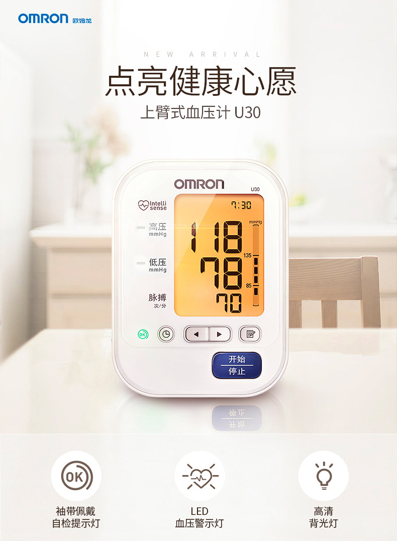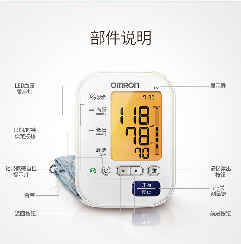 欧姆龙电子血压计U30家用上臂式全自动准确血压测量血压仪器