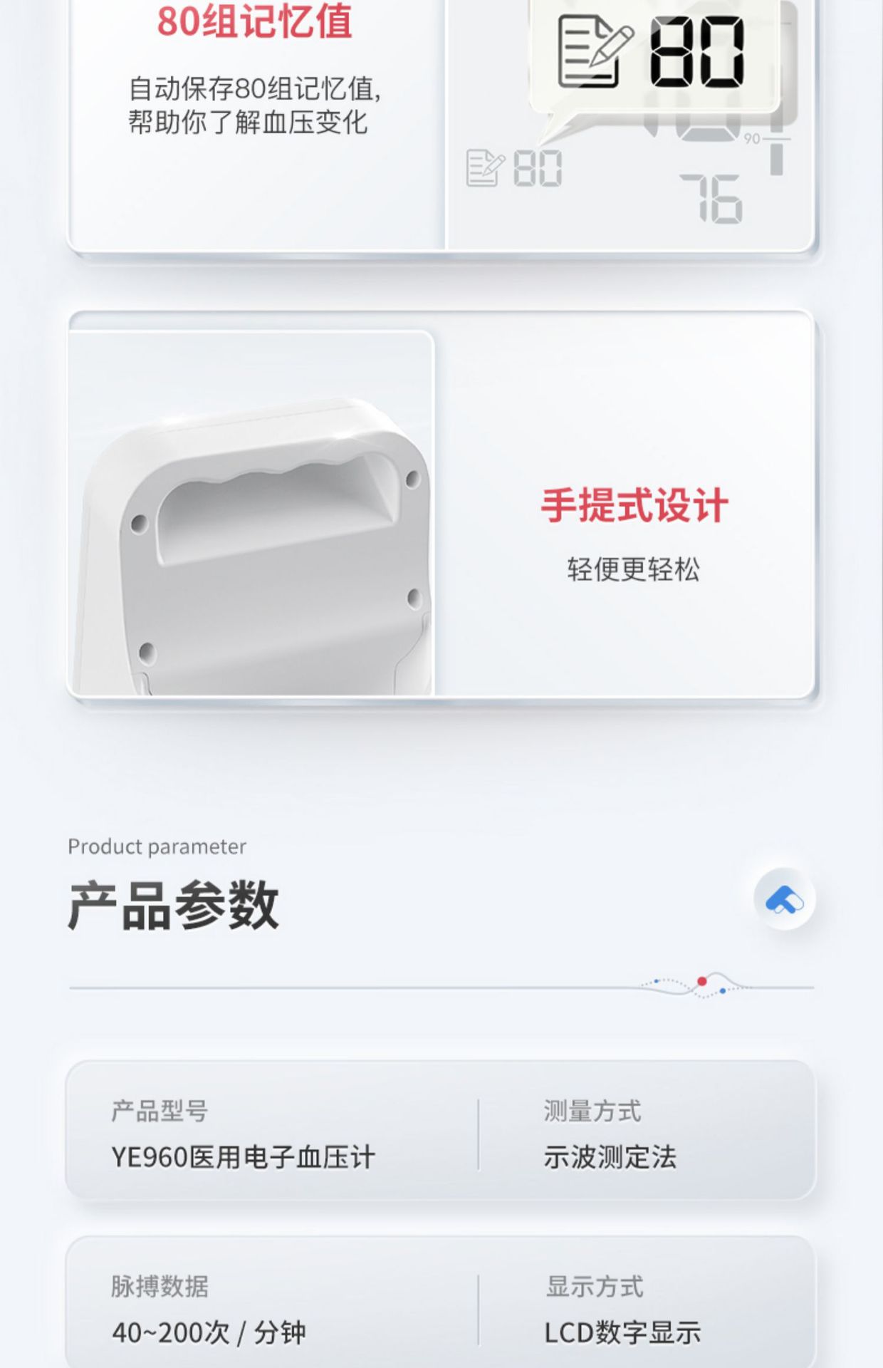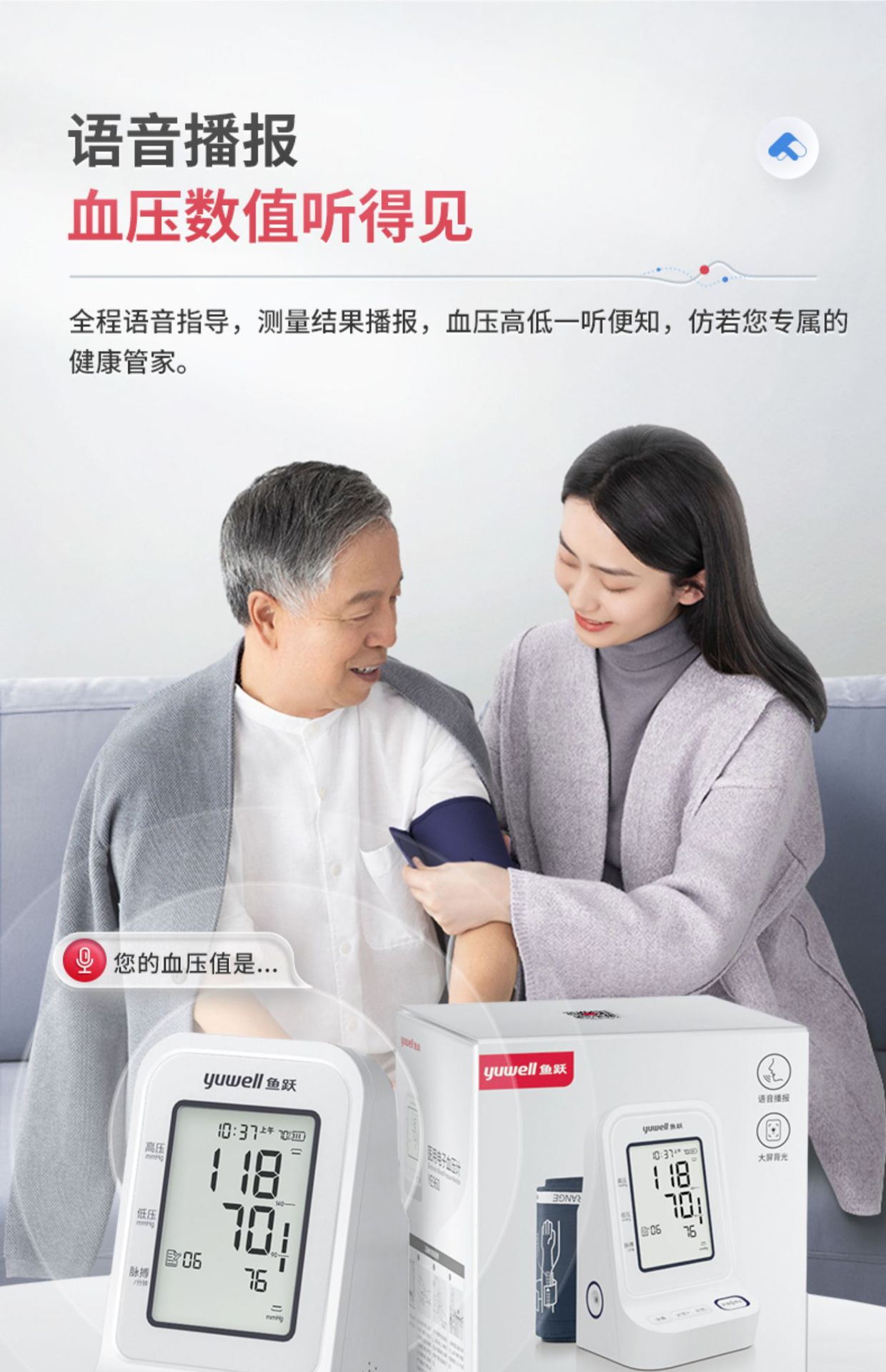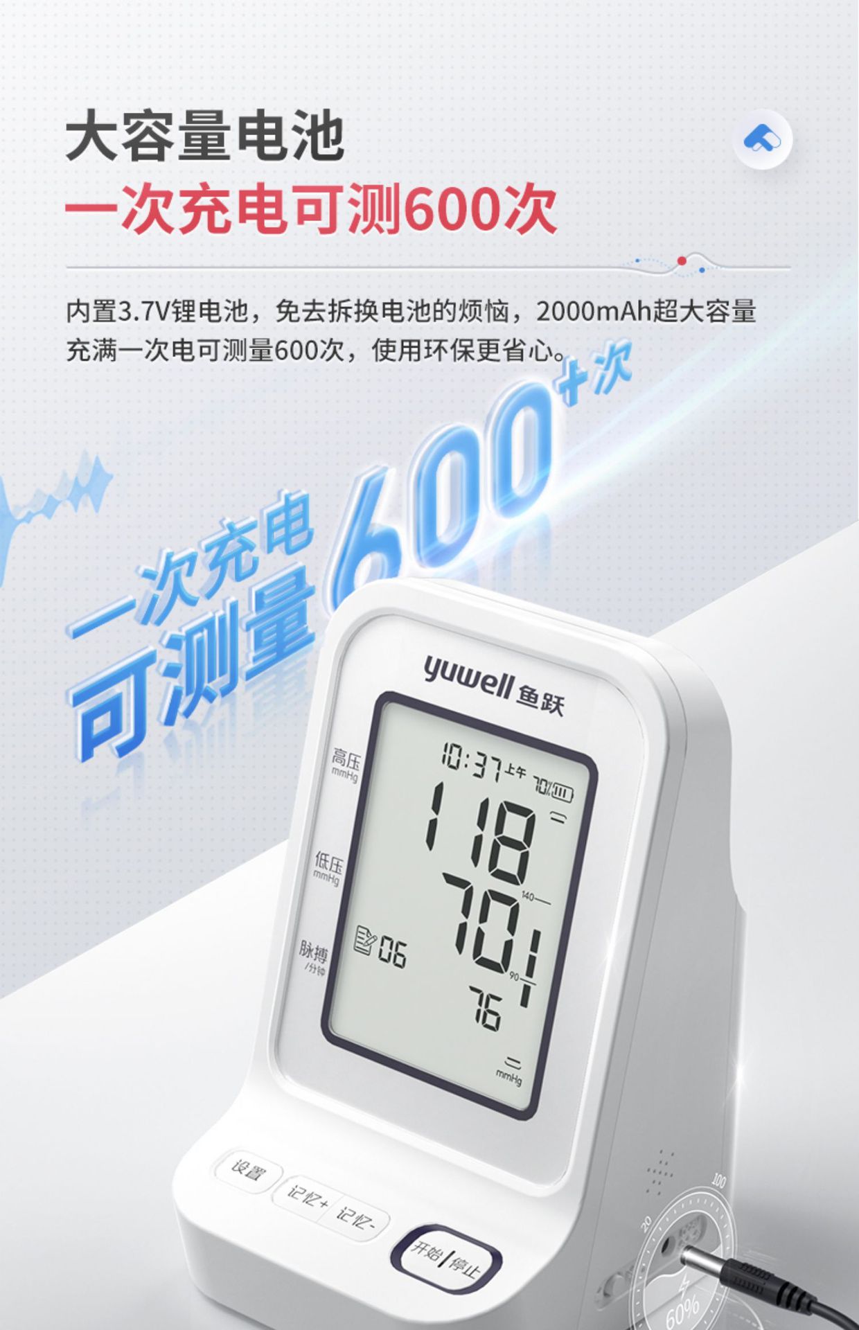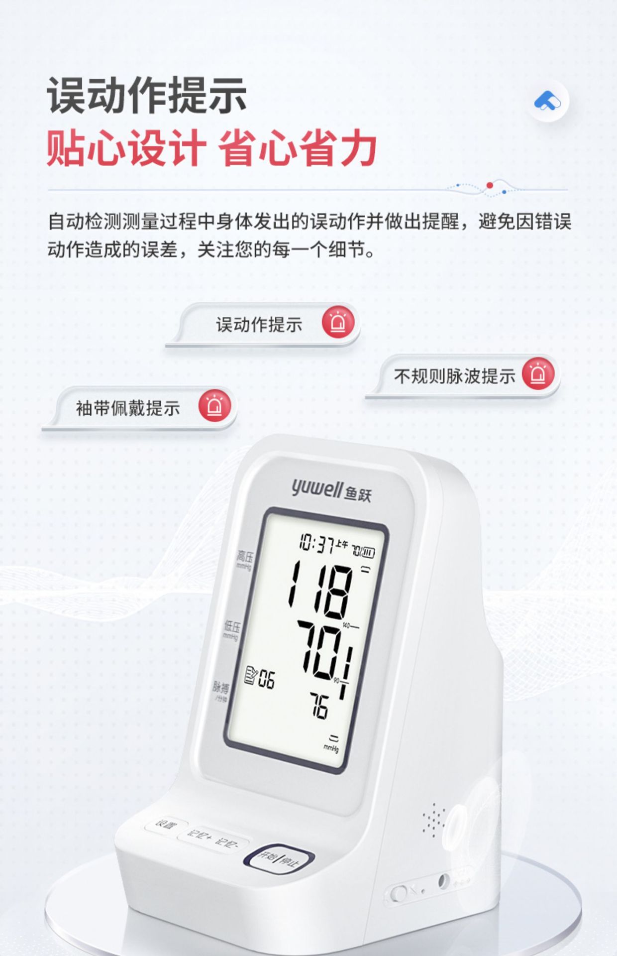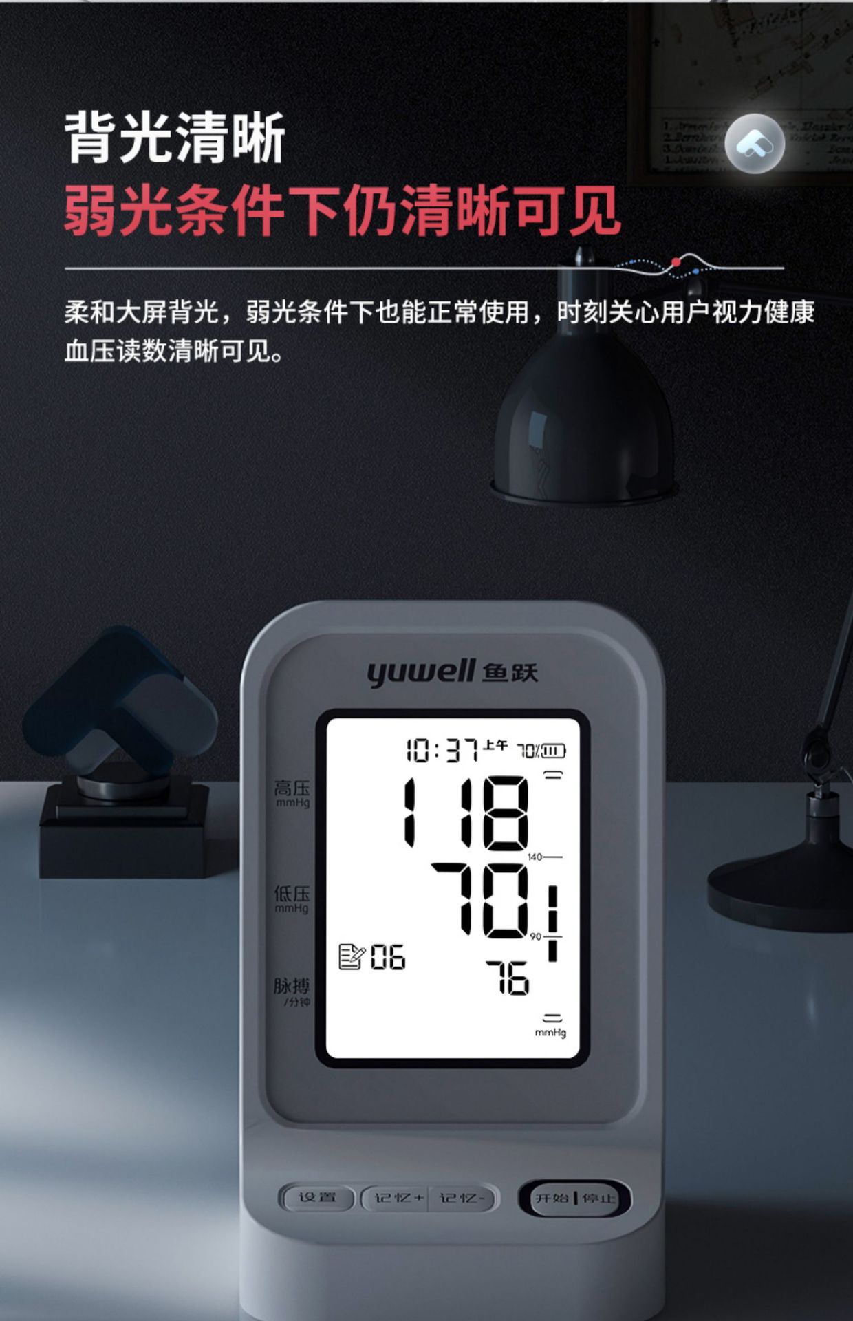 鱼跃电子血压计YE960家用臂式大屏血压仪血压测量仪血压测量计
