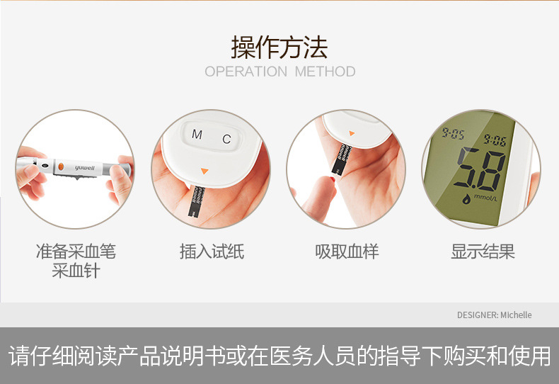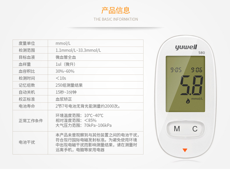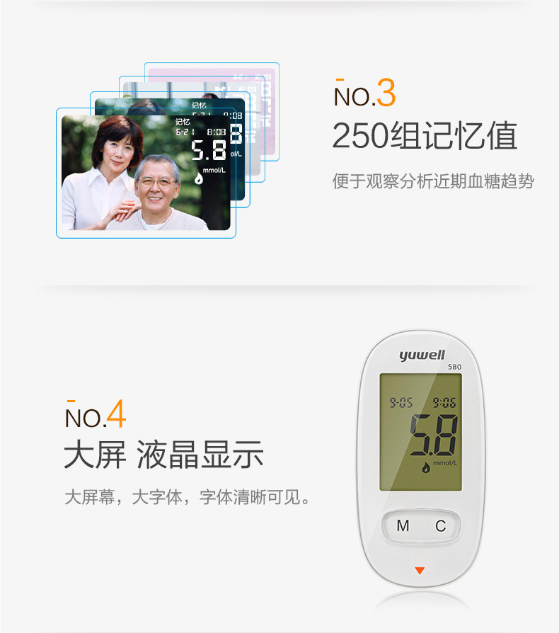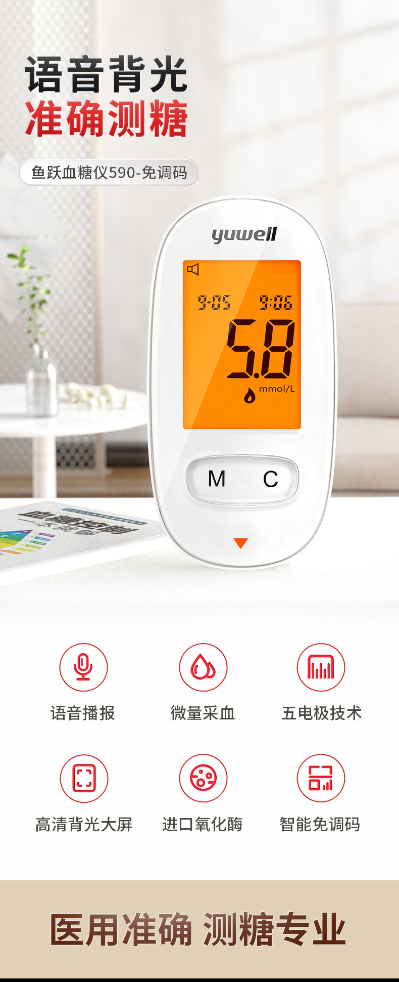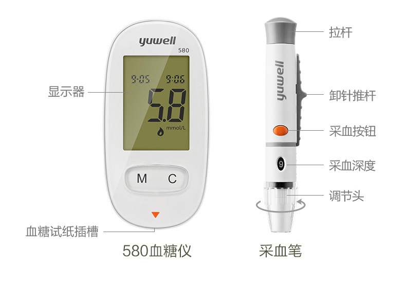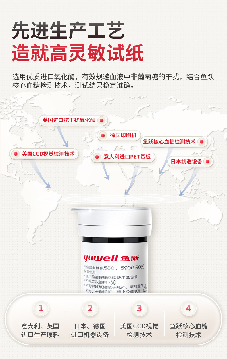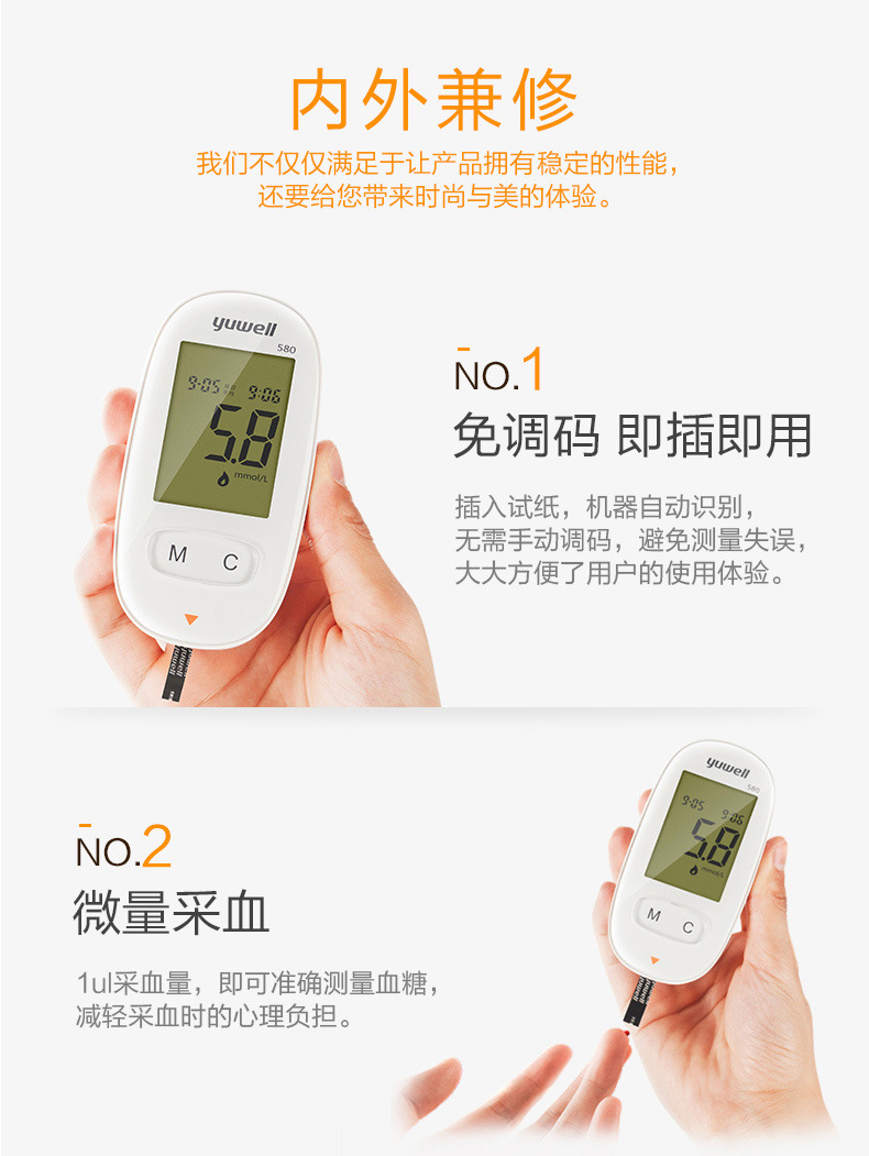 鱼跃yuwell580试纸悦准型590测试纸测量仪套装含50片试纸