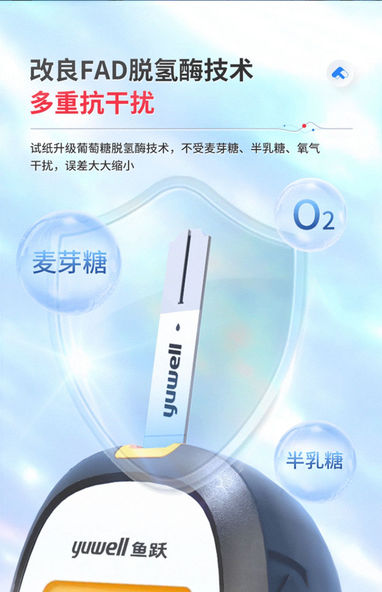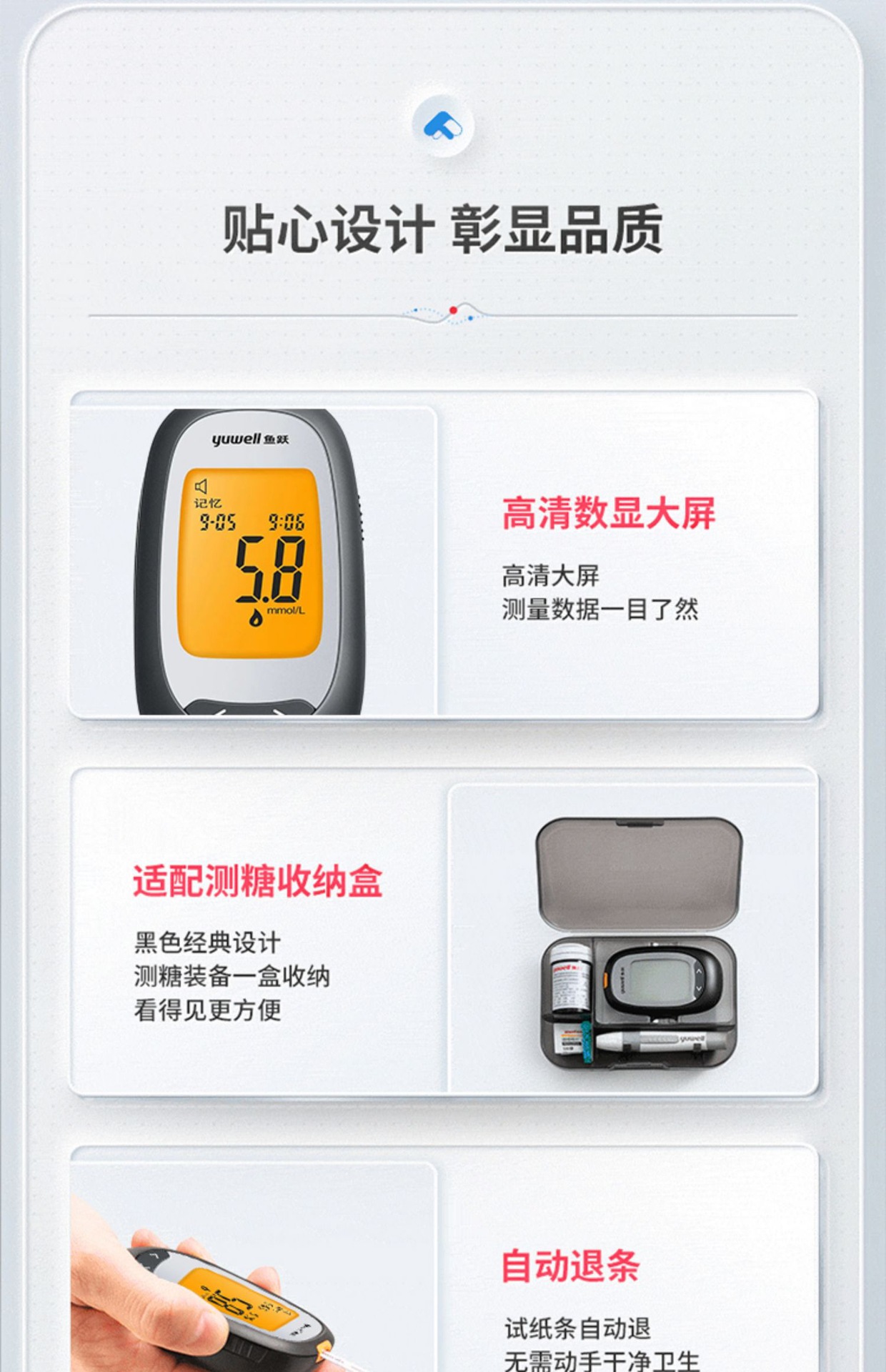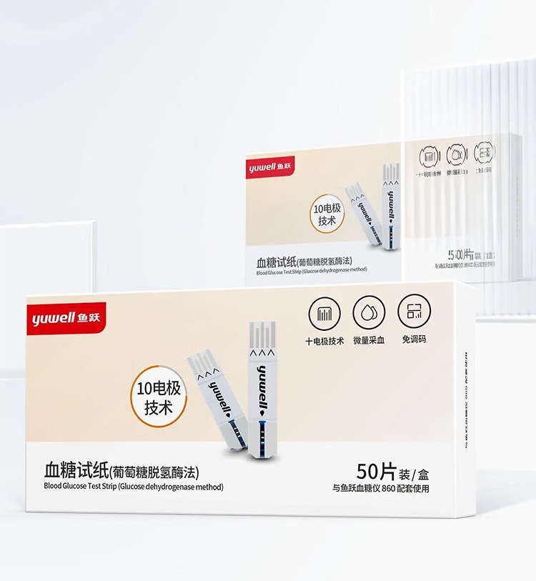 鱼跃新款860血糖测试仪独立包装试脱氢酶纸条家用测量血糖的仪器