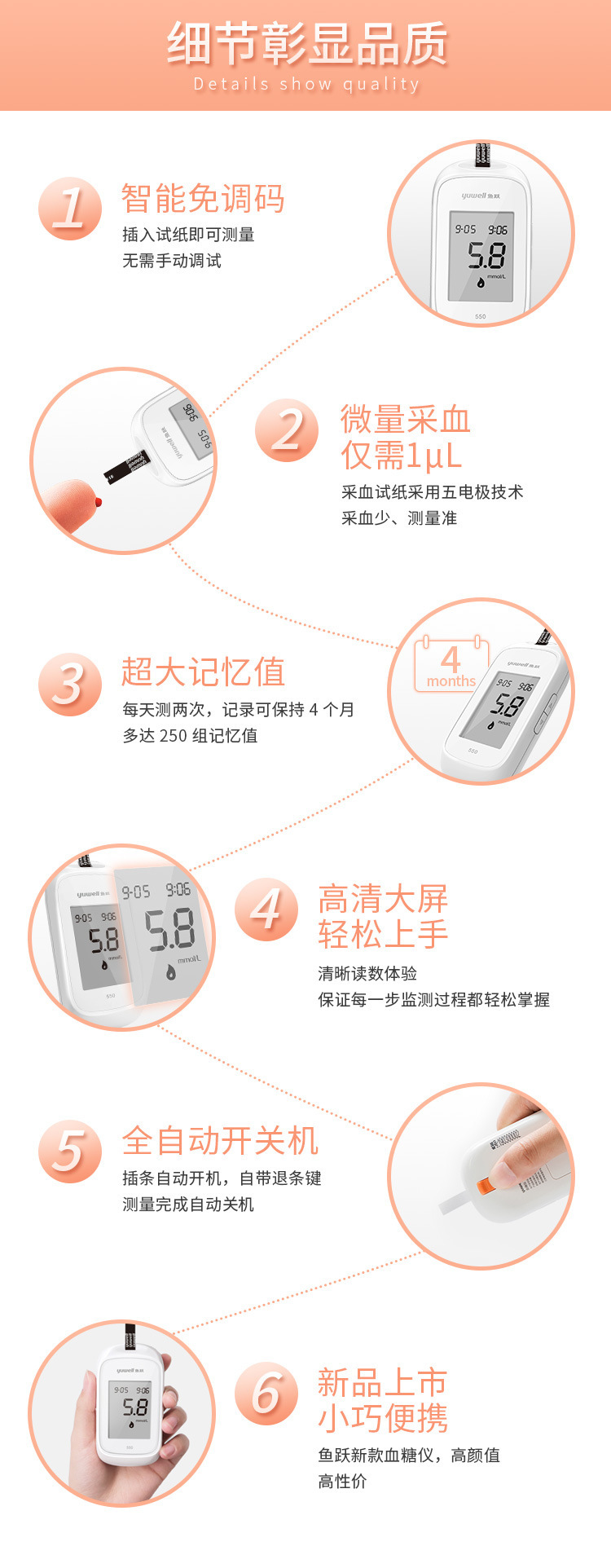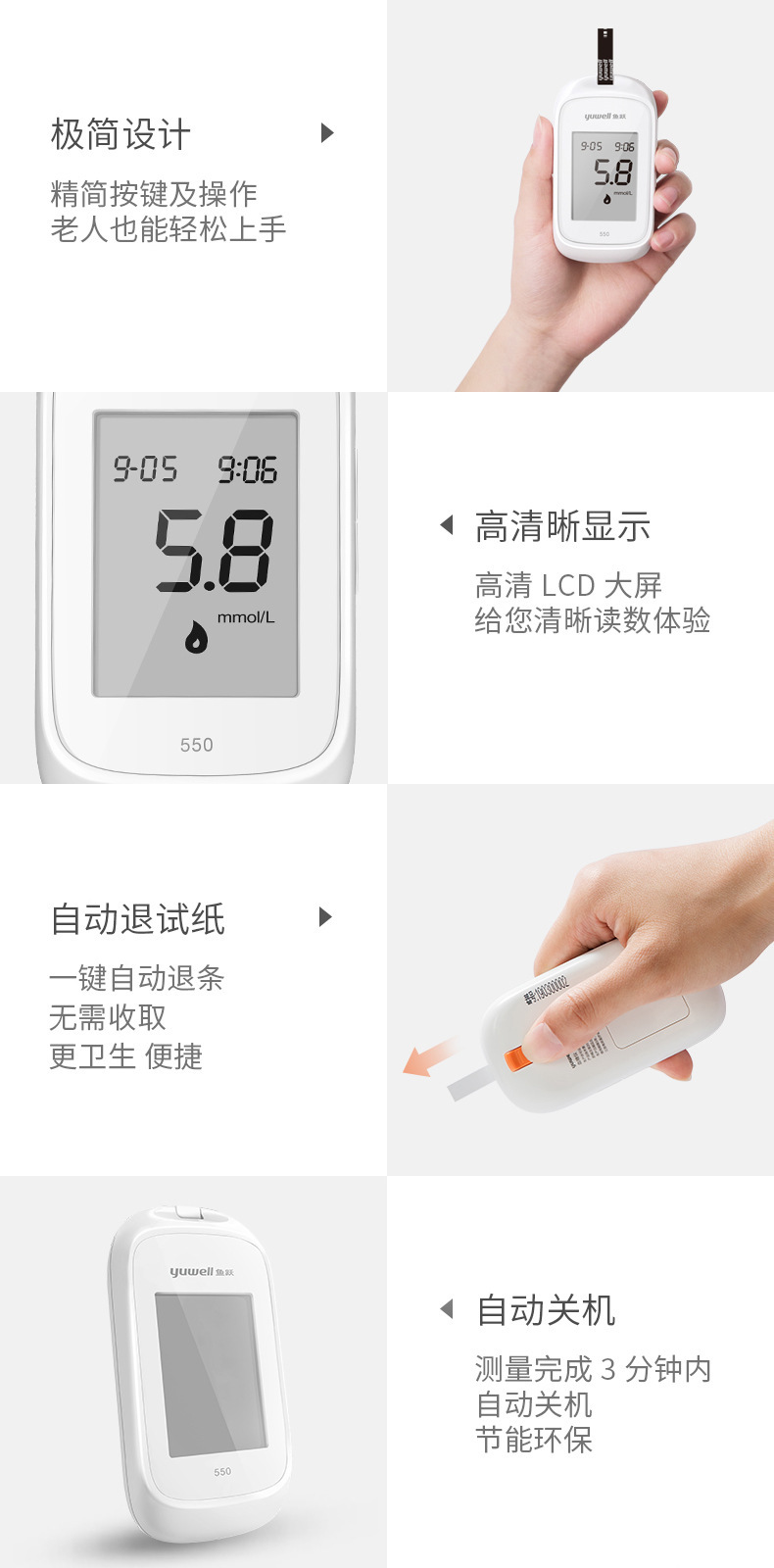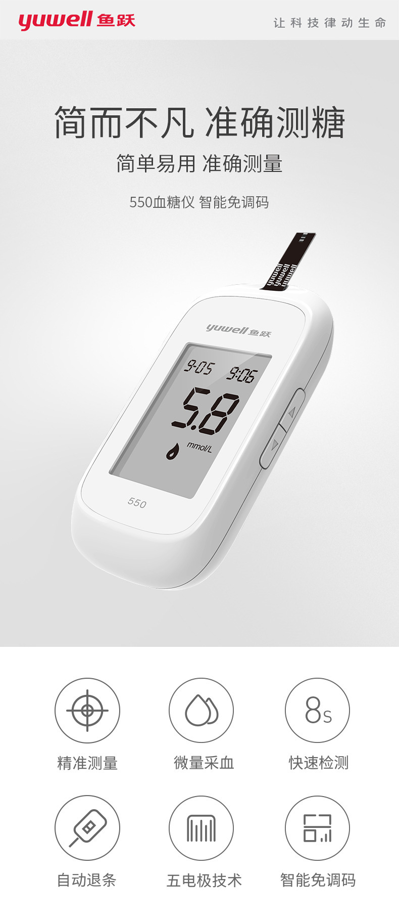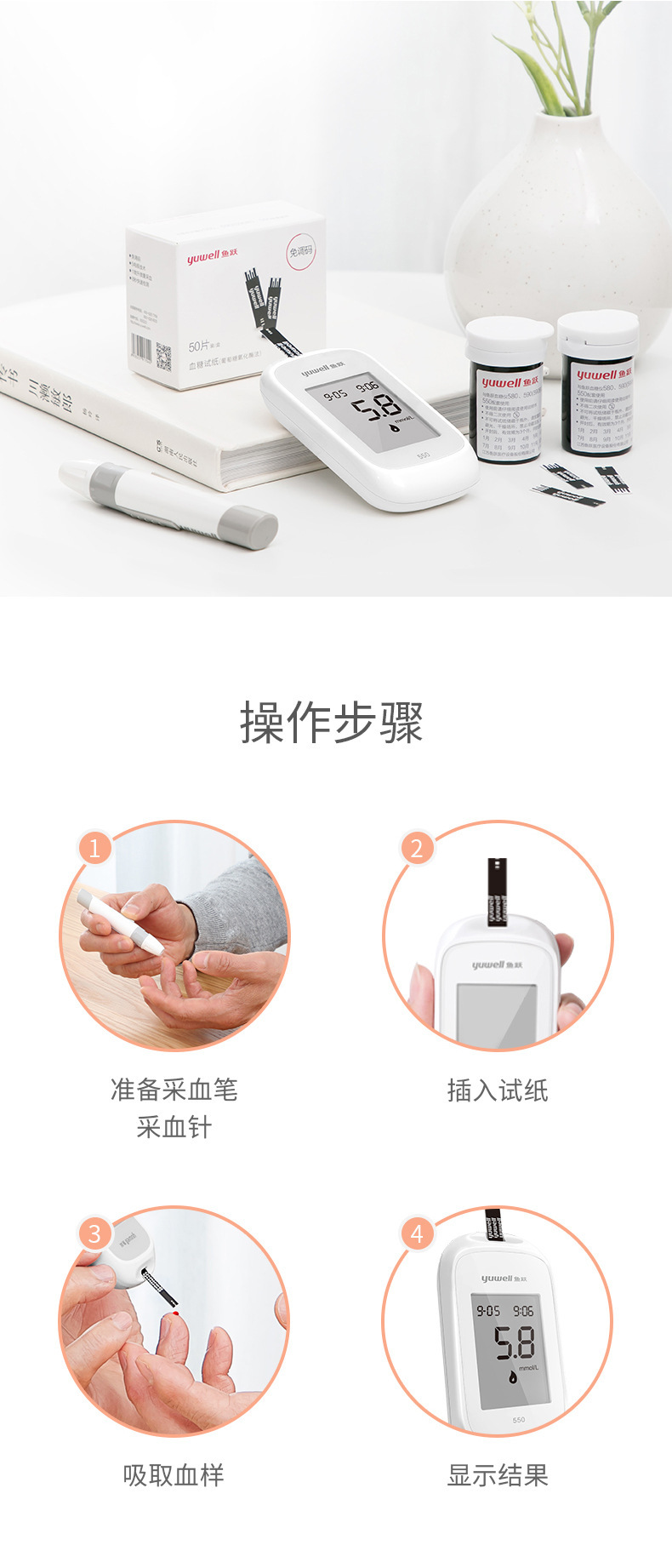 鱼跃550试纸家用悦准型550测试纸测量仪器套装含50片试纸