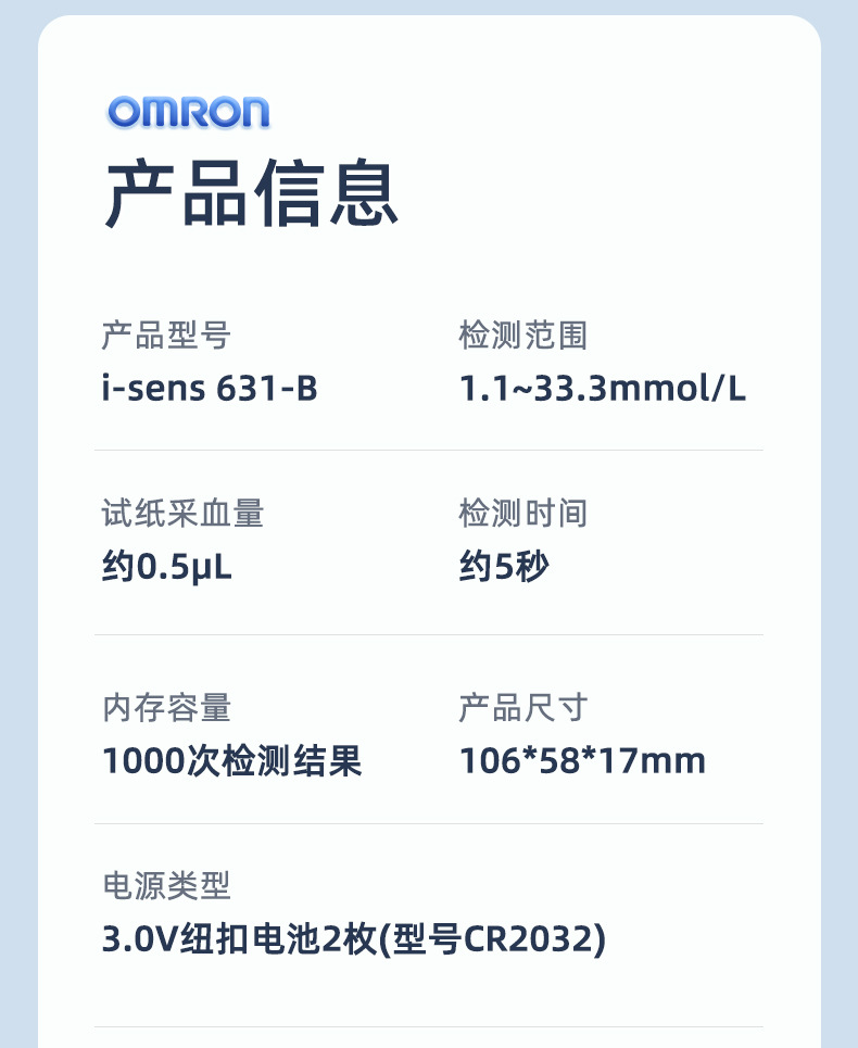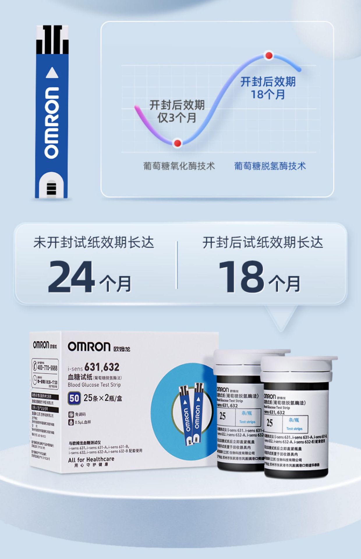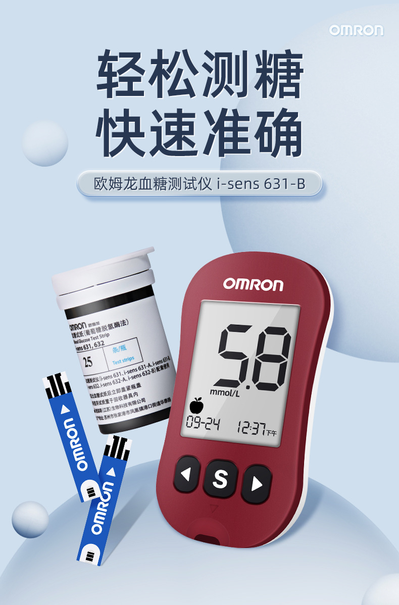 欧姆龙血糖仪631B家用便携测量血糖的仪器测试仪试纸条官方