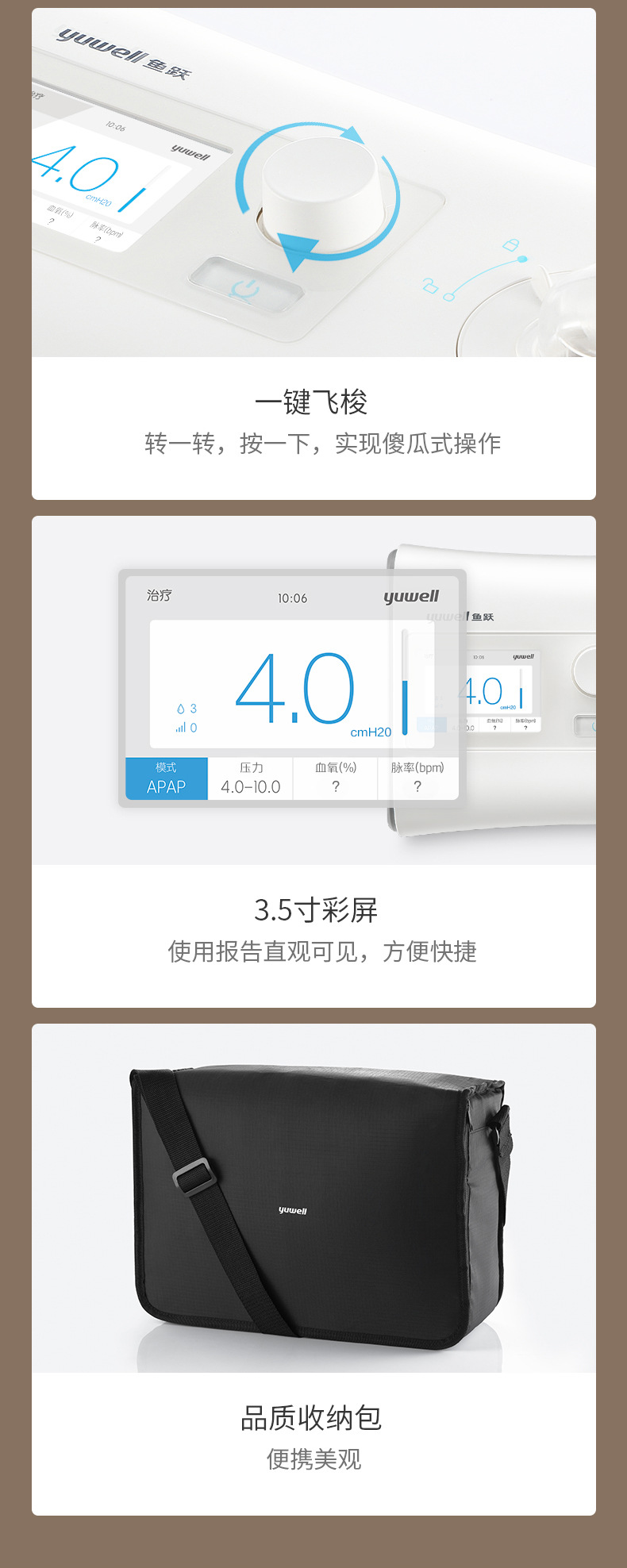 鱼跃单水平全自动呼吸机YH-550家用医用无创老人打呼噜睡眠呼吸器