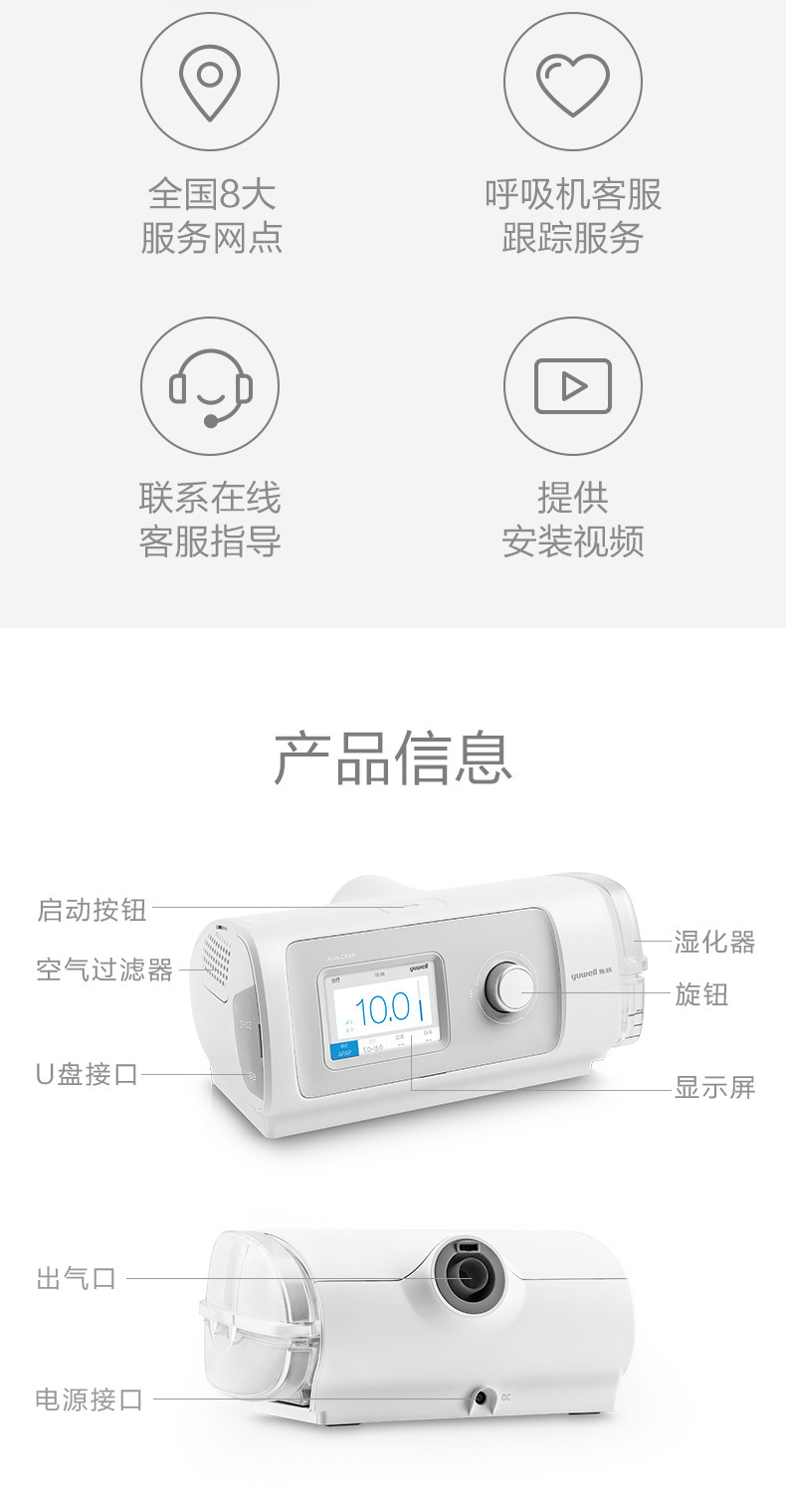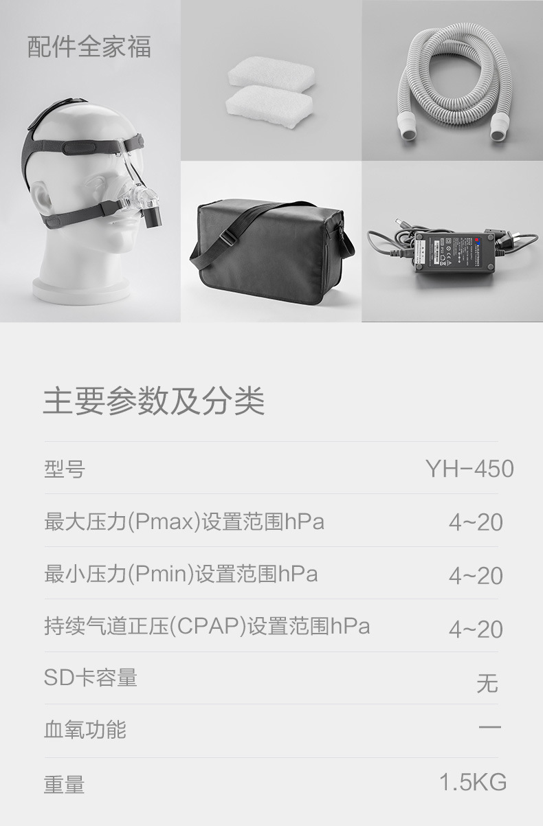 鱼跃呼吸机YH-450全自动医用正压无创家用全自动单水平睡眠呼吸机