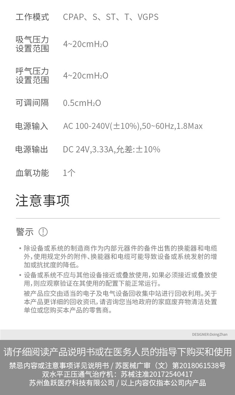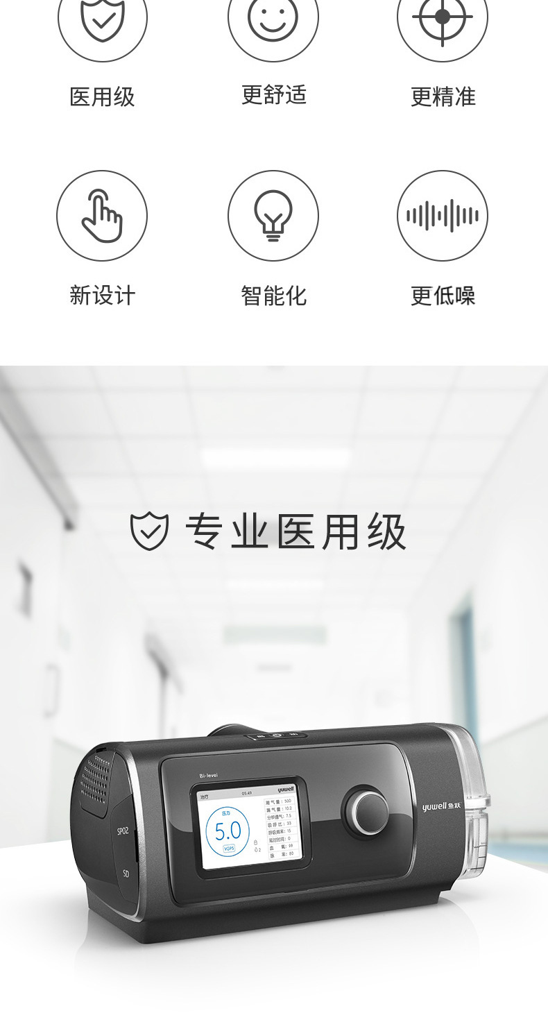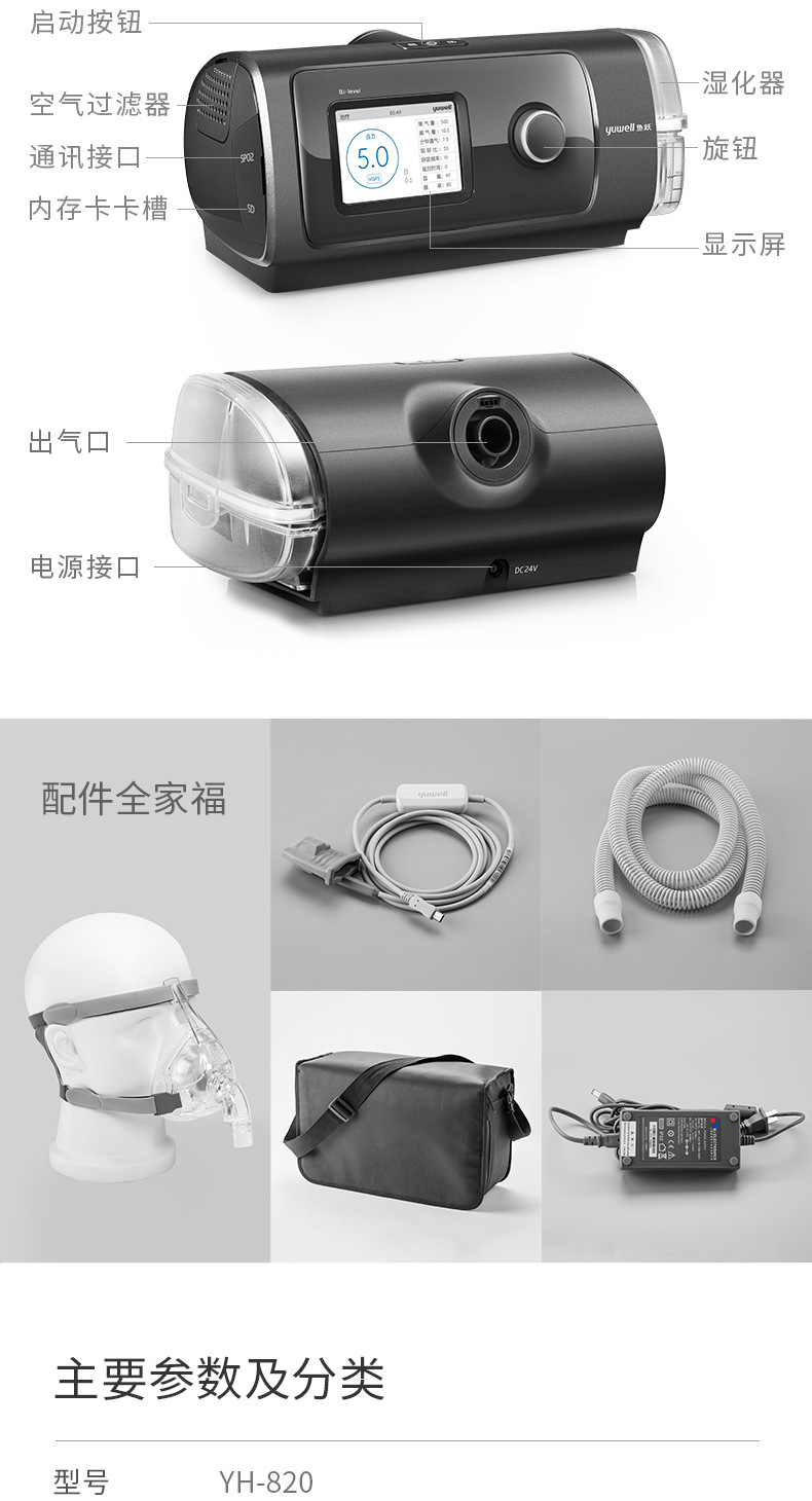 鱼跃呼吸机YH-820双水平全自动家用睡眠呼吸器医用无创呼吸机