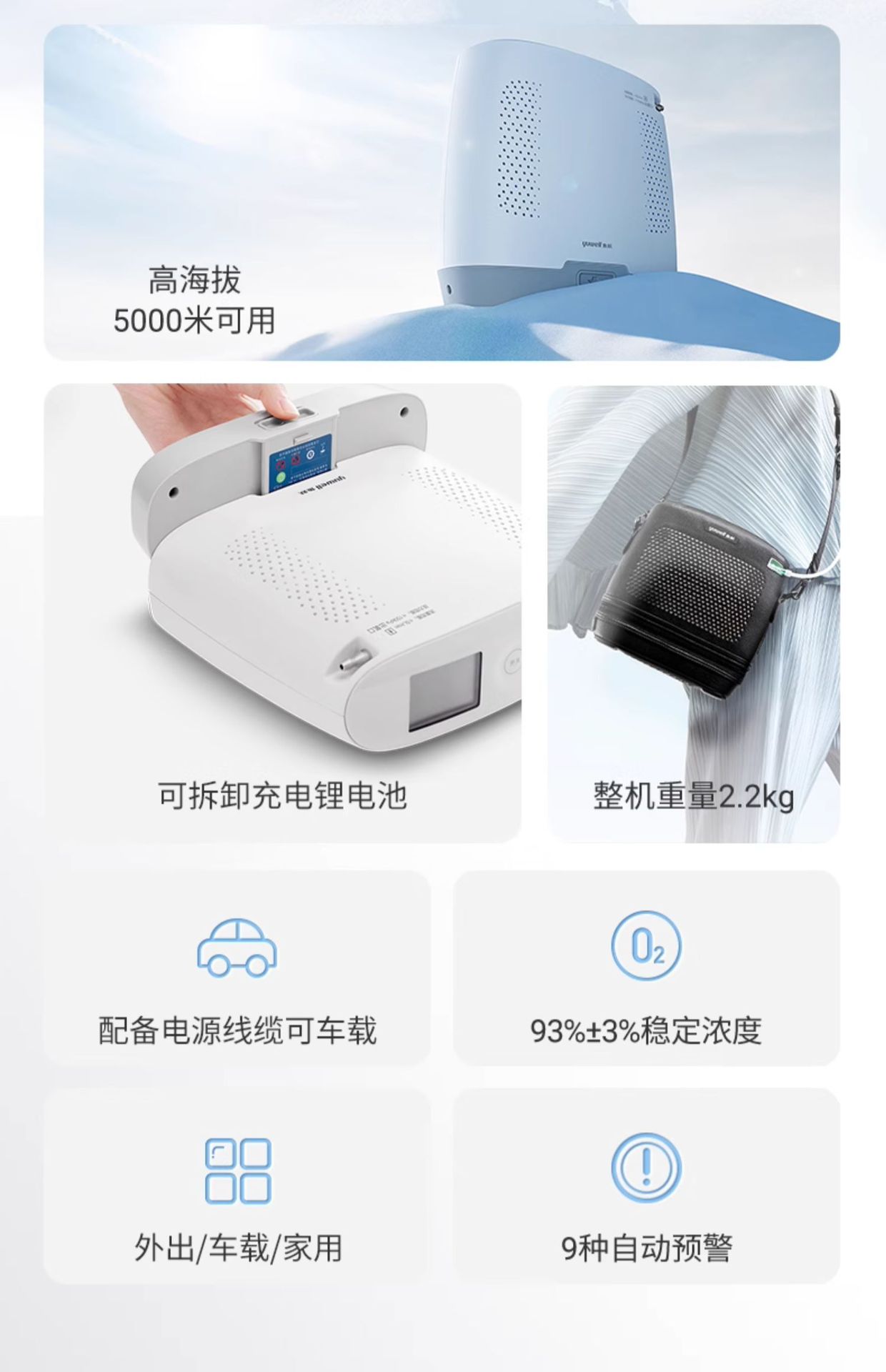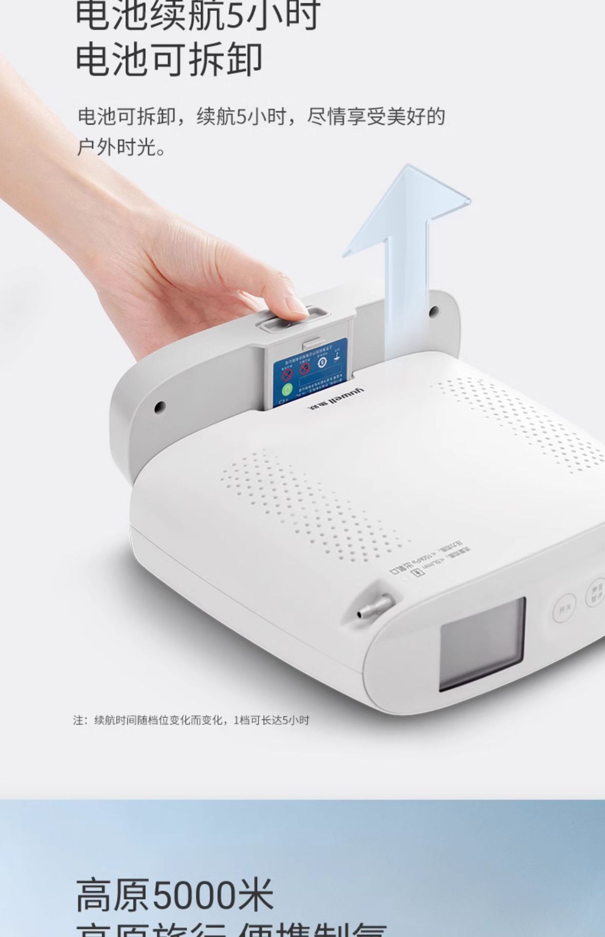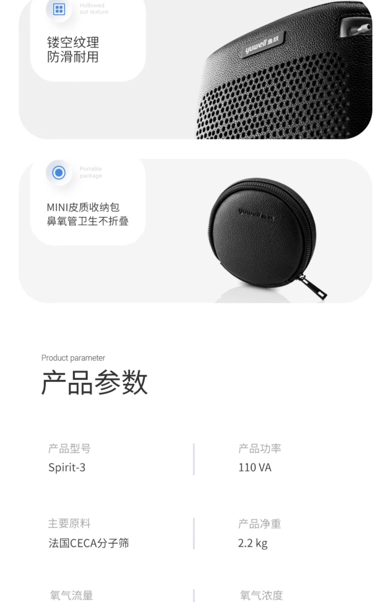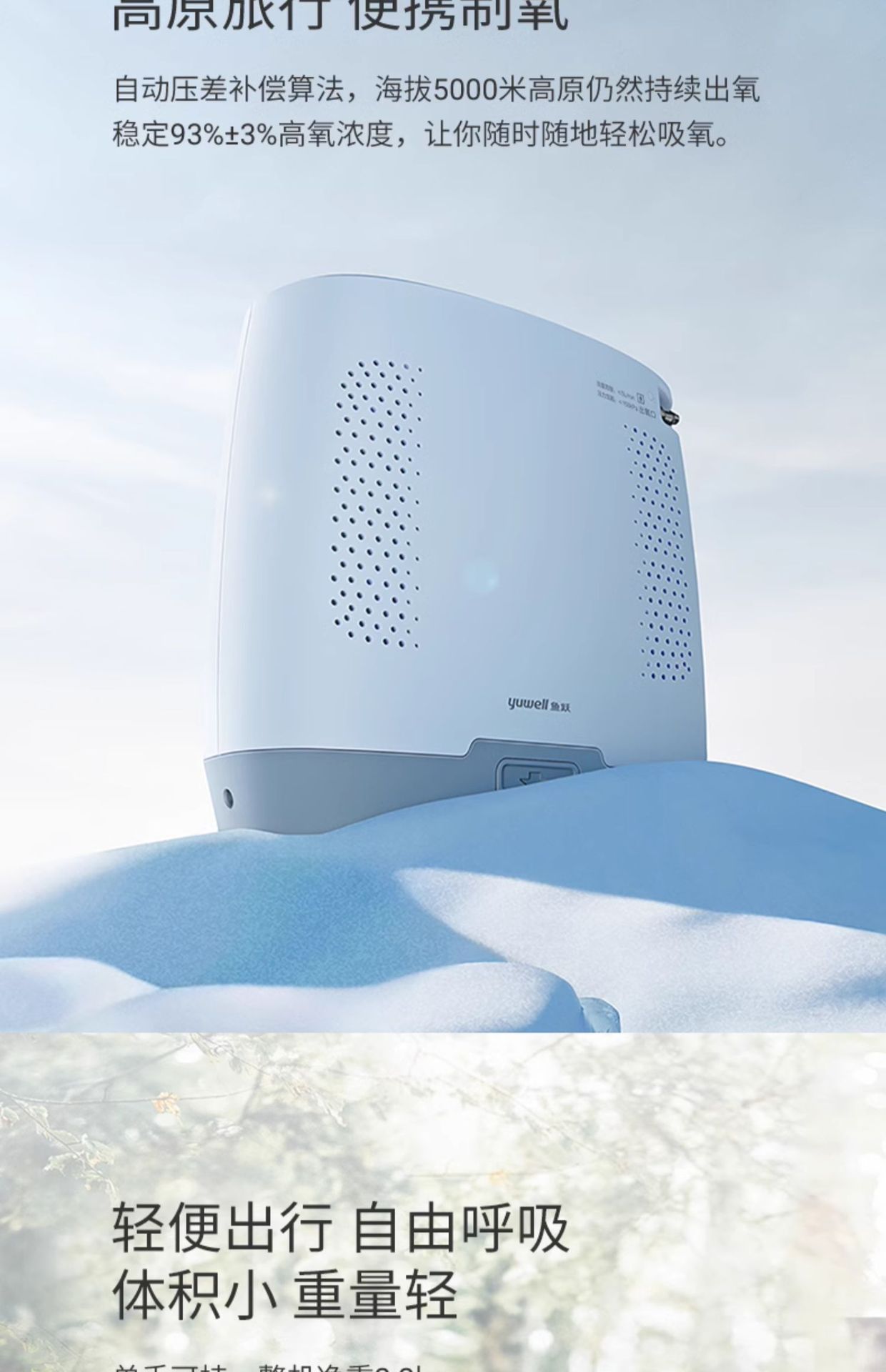鱼跃(YUWELL)制氧机随身便携氧气机户外高原飞机车载吸氧Spirit-3