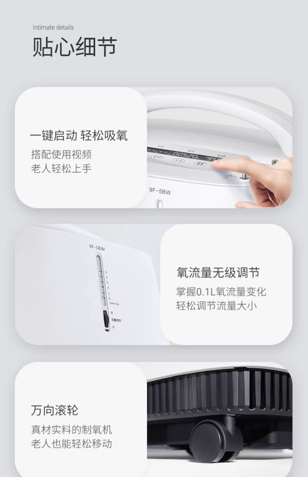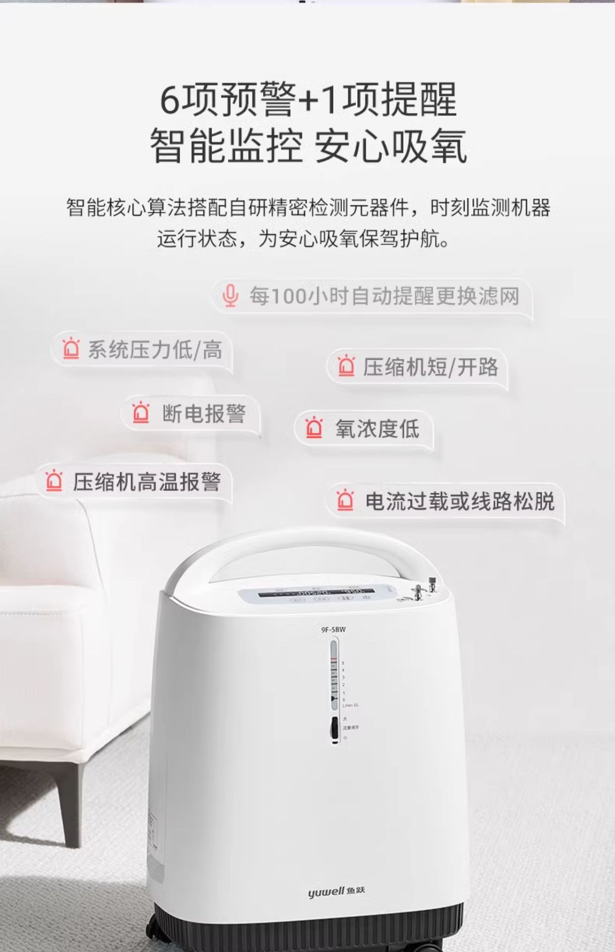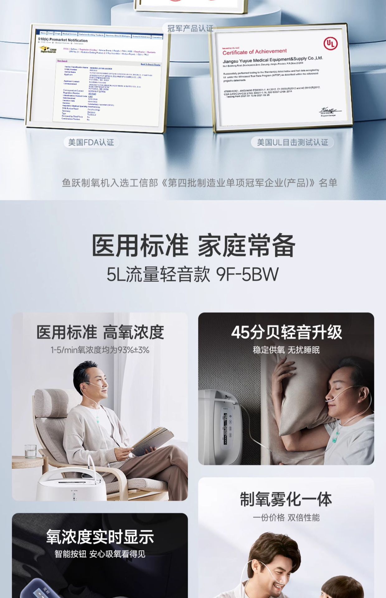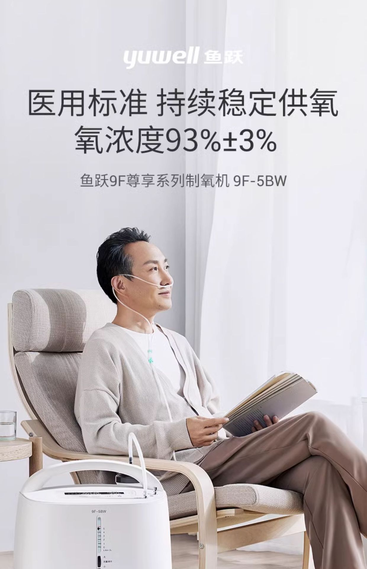 鱼跃5L制氧机9F-5BW/9F-3BW轻音升级吸氧机遥控雾化家用老人