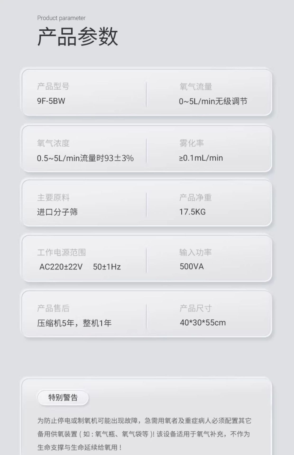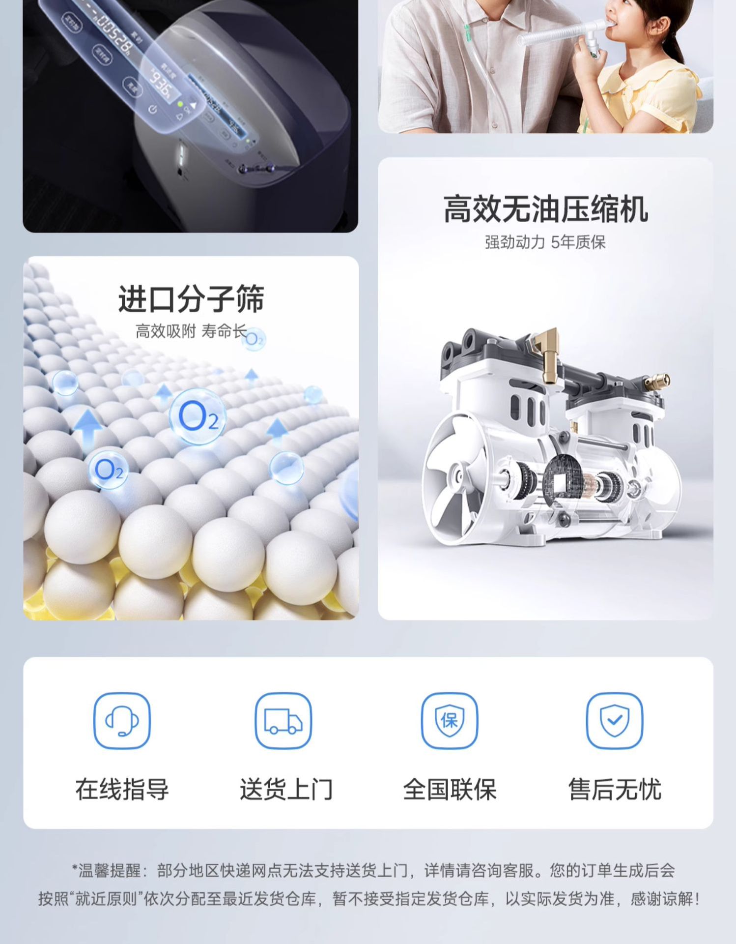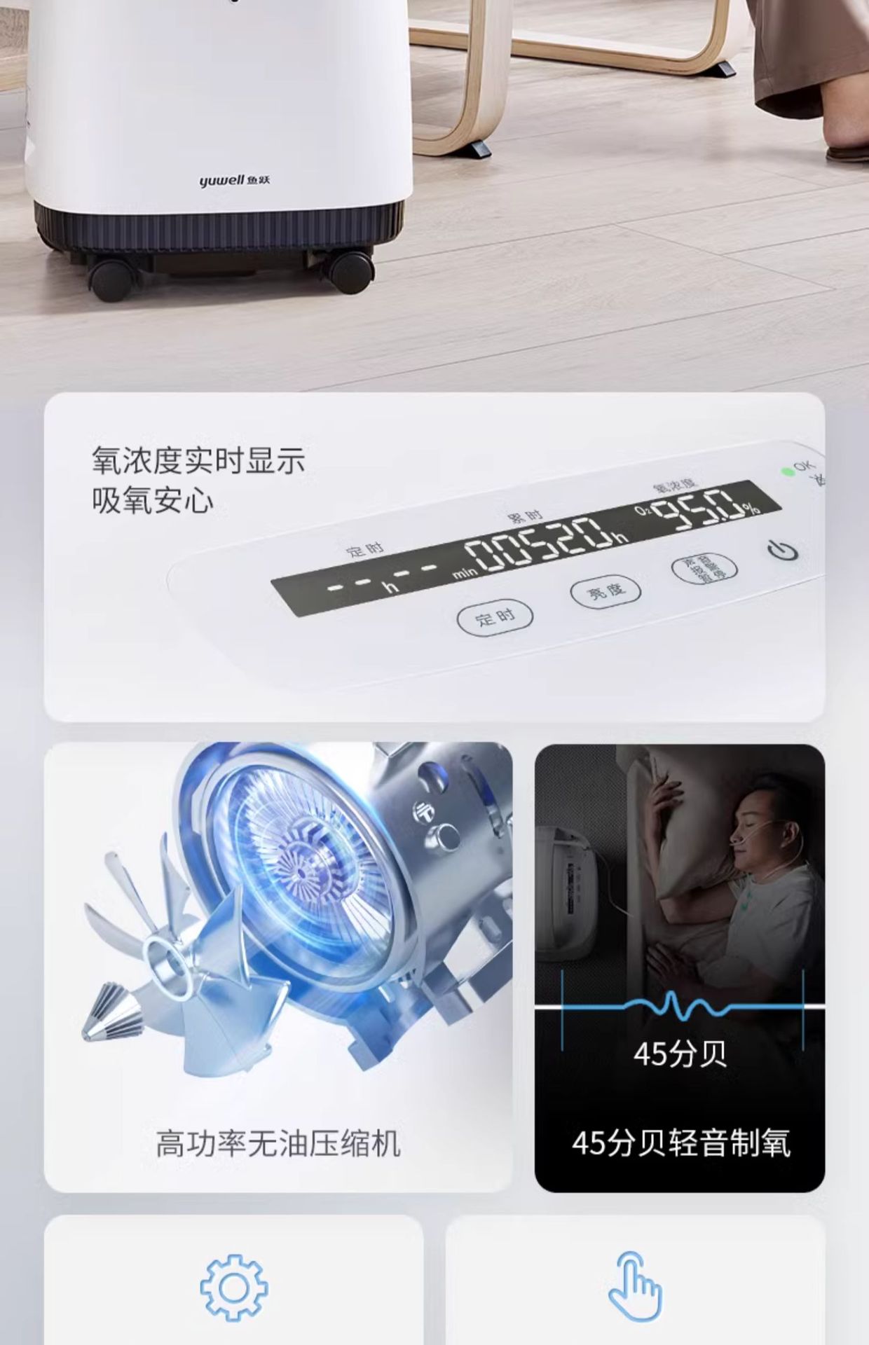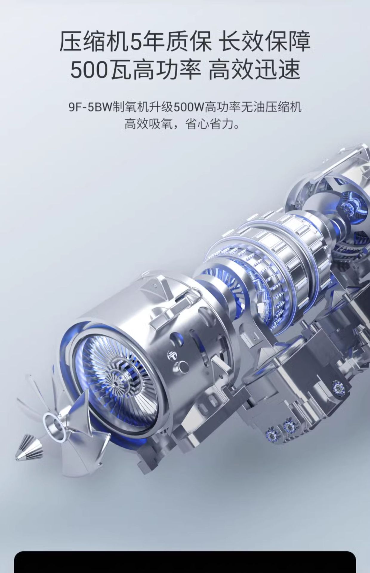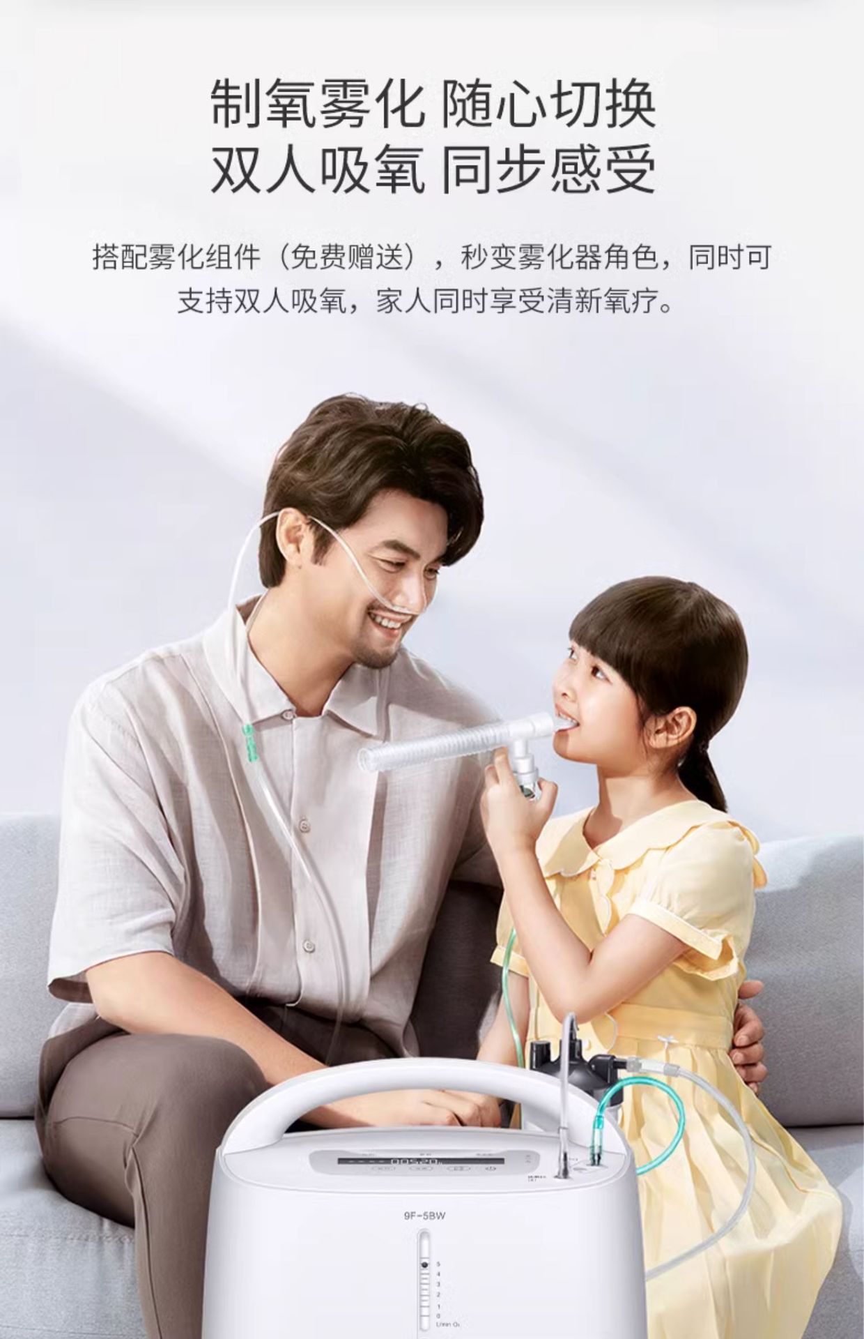 鱼跃5L制氧机9F-5BW/9F-3BW轻音升级吸氧机遥控雾化家用老人