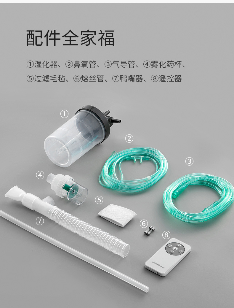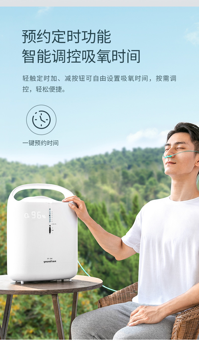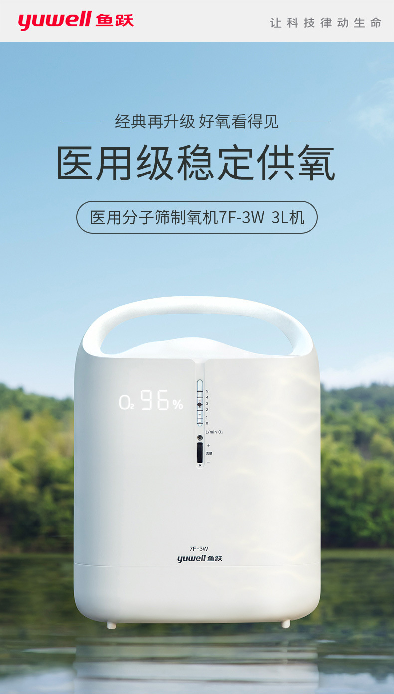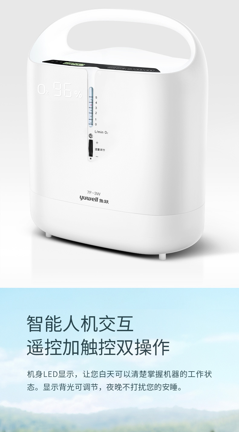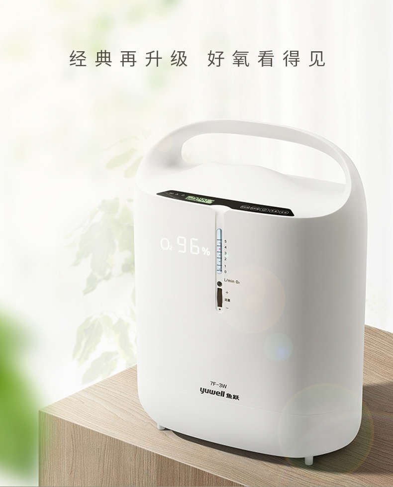 鱼跃家用带雾化3L浓度90%制氧机老人吸氧机孕妇氧气机7F-3W