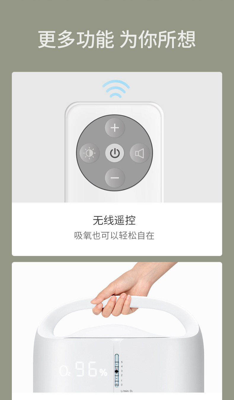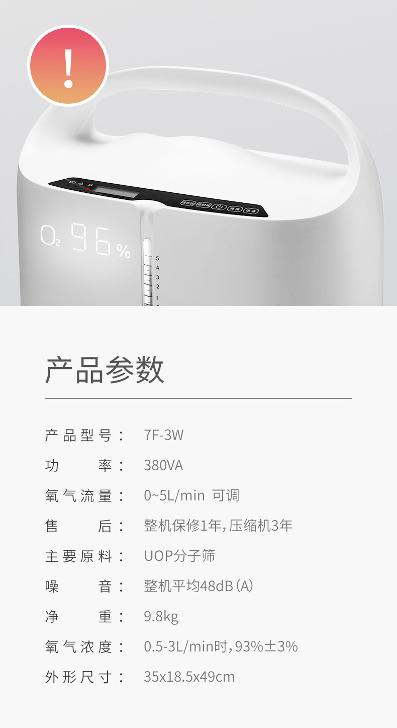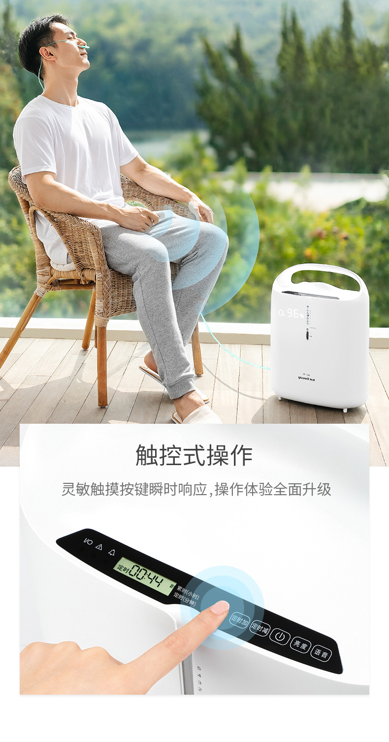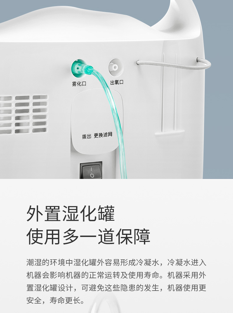 鱼跃家用带雾化3L浓度90%制氧机老人吸氧机孕妇氧气机7F-3W