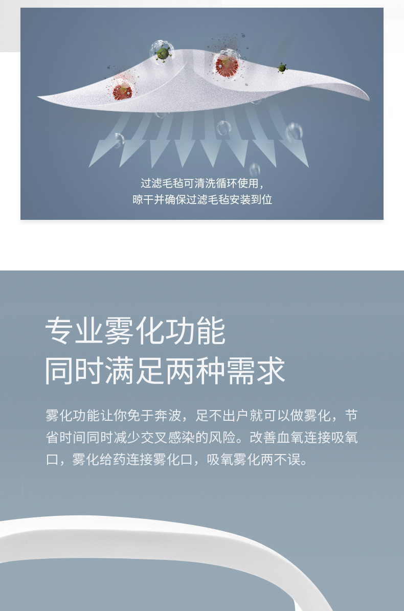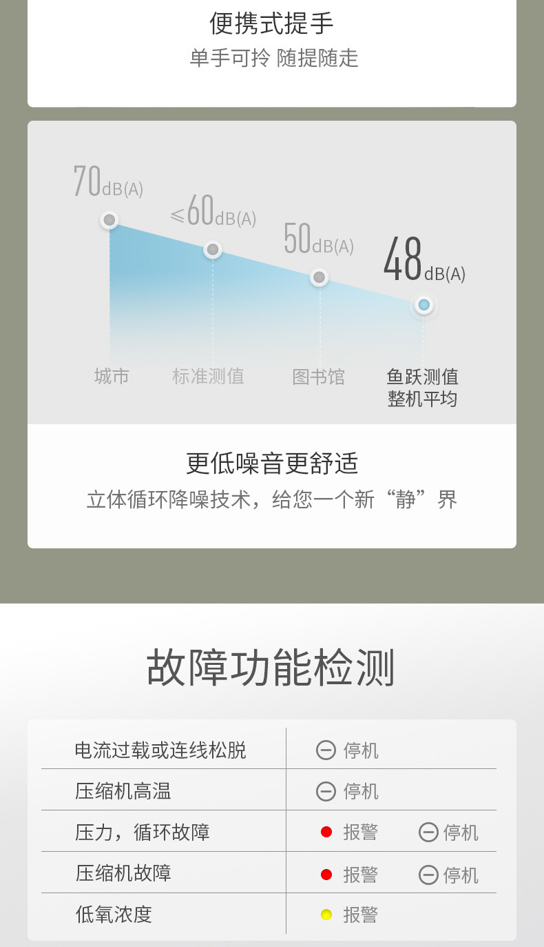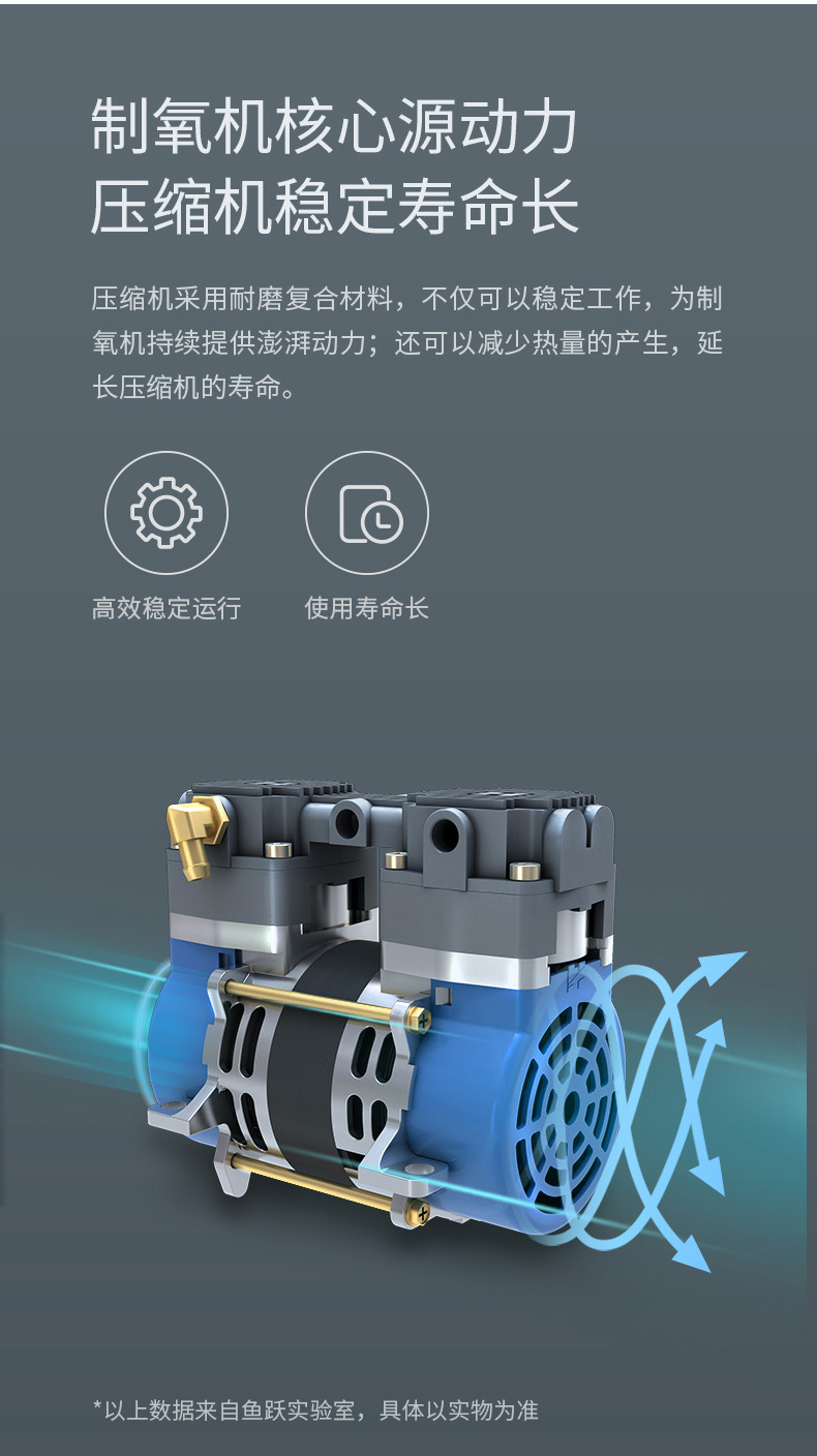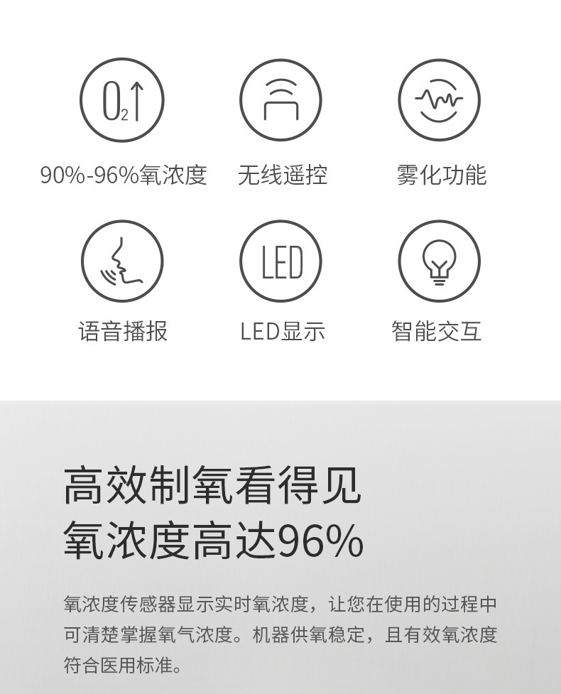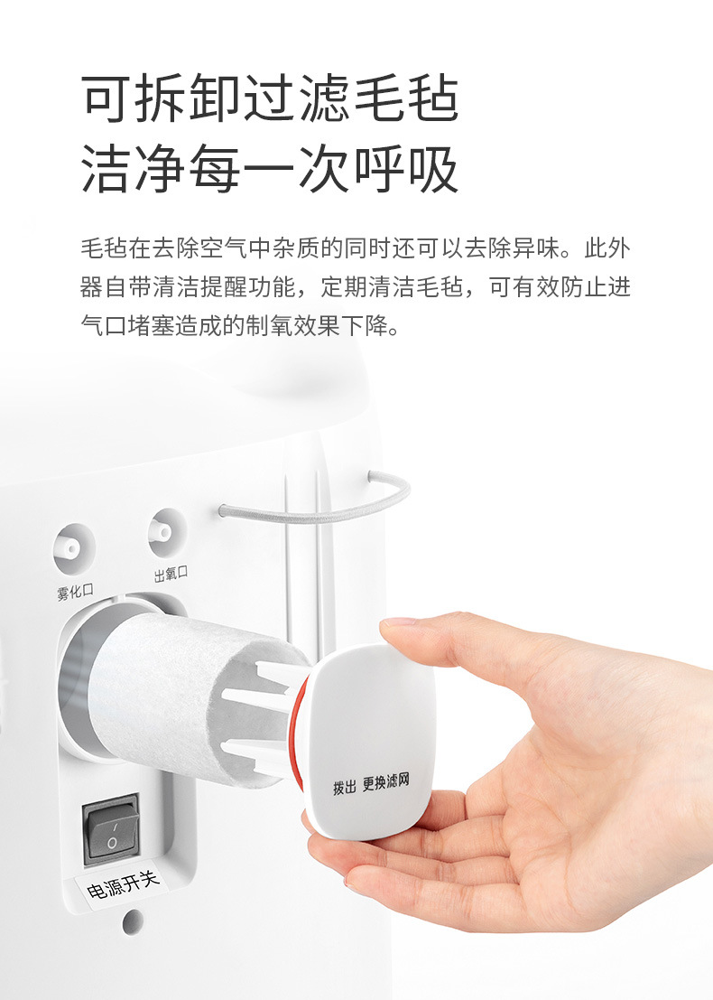 鱼跃家用带雾化3L浓度90%制氧机老人吸氧机孕妇氧气机7F-3W