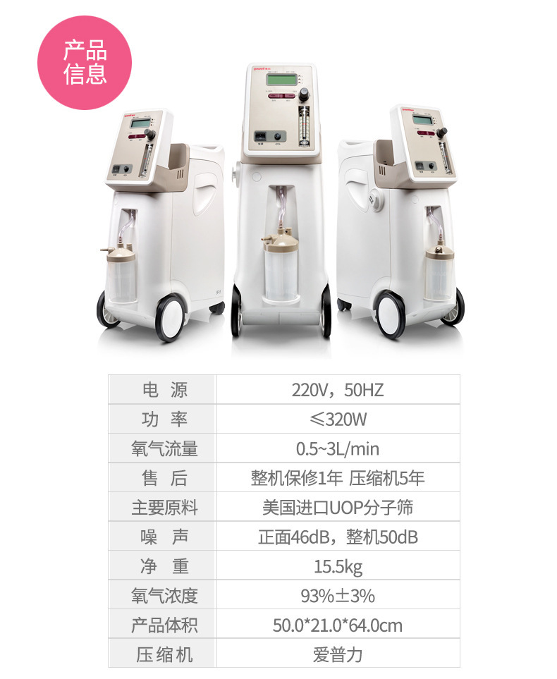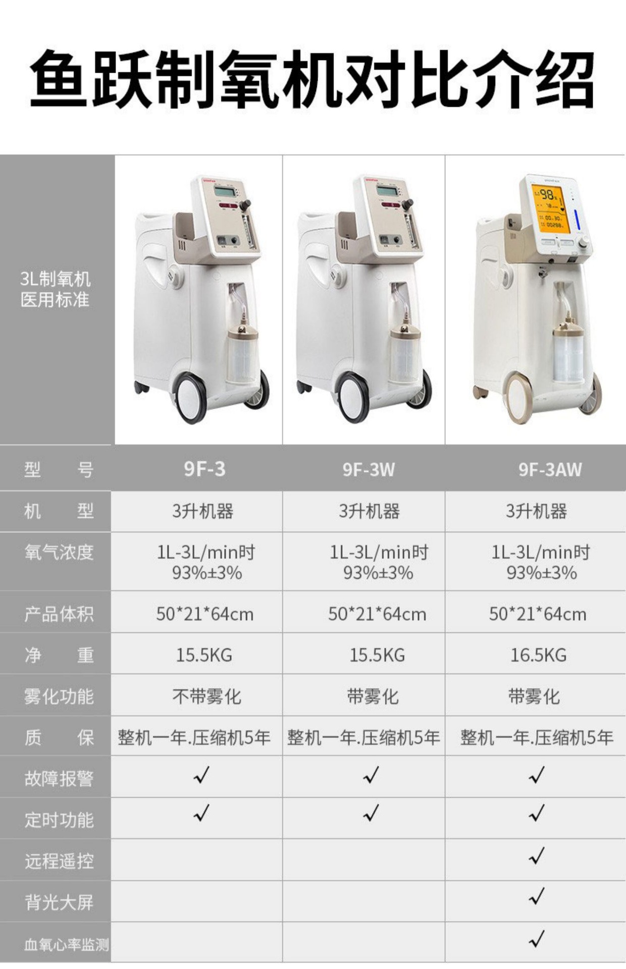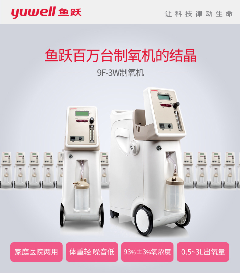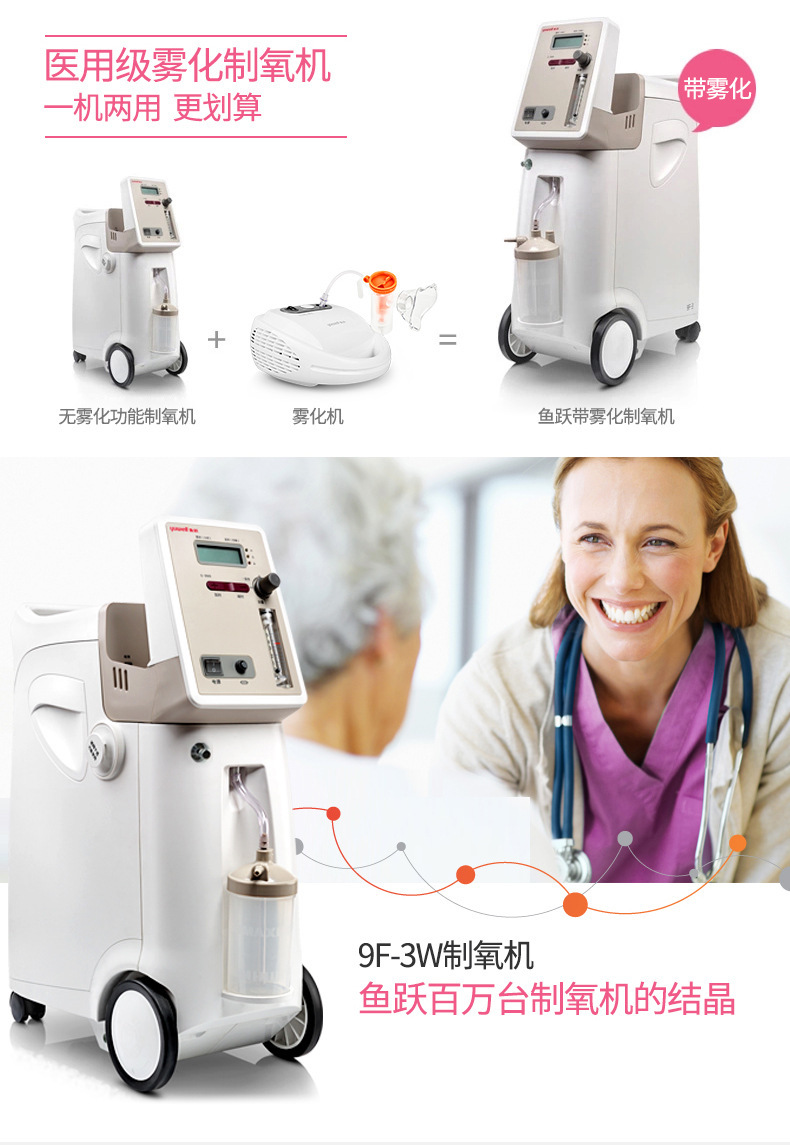 鱼跃制氧机9F-3W家用3升医用3w吸氧3升雾化老人氧气机家庭吸氧机