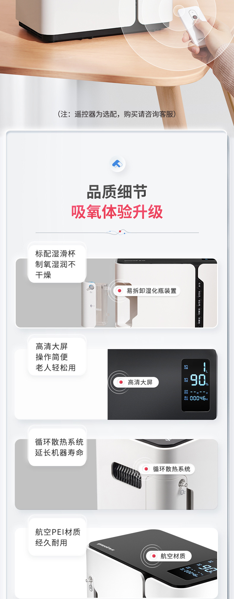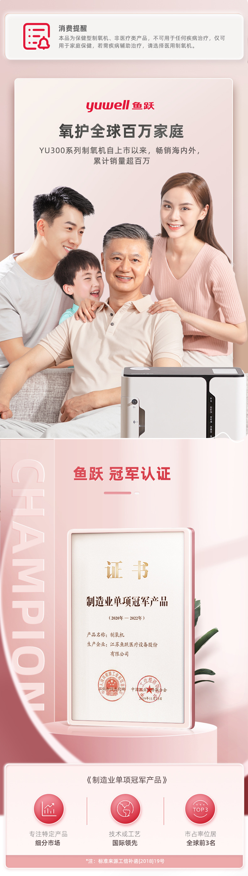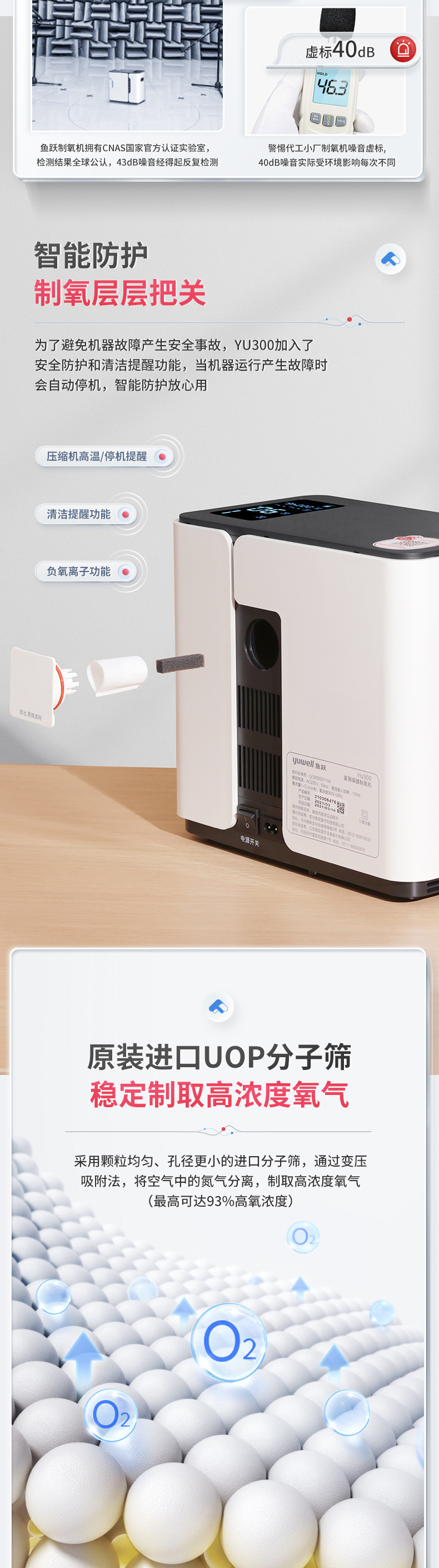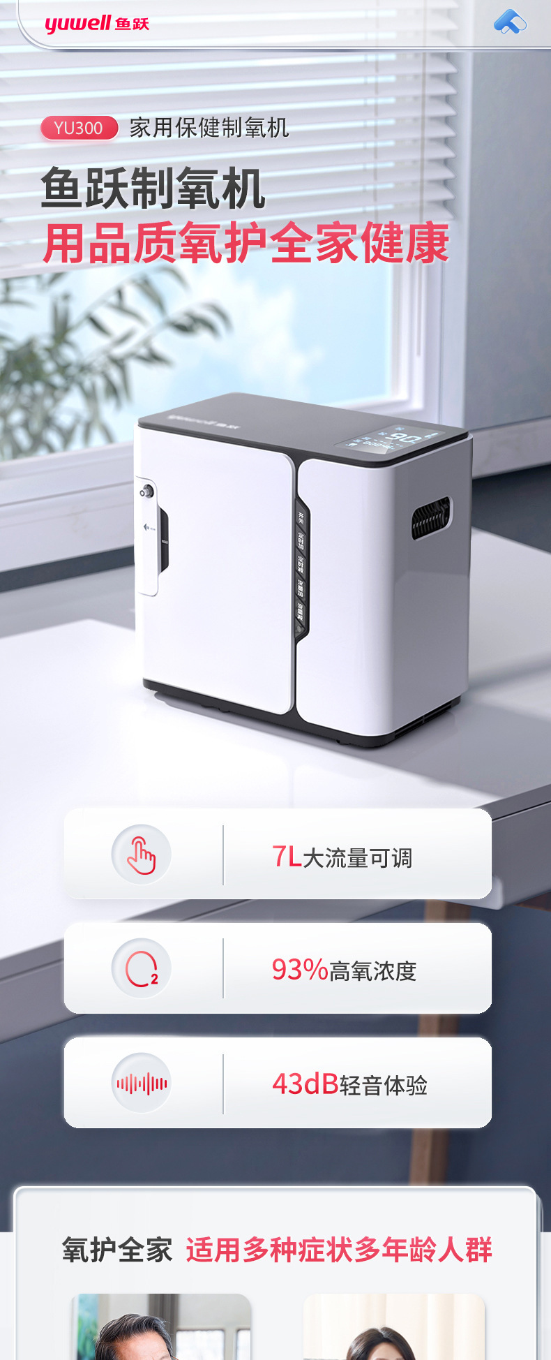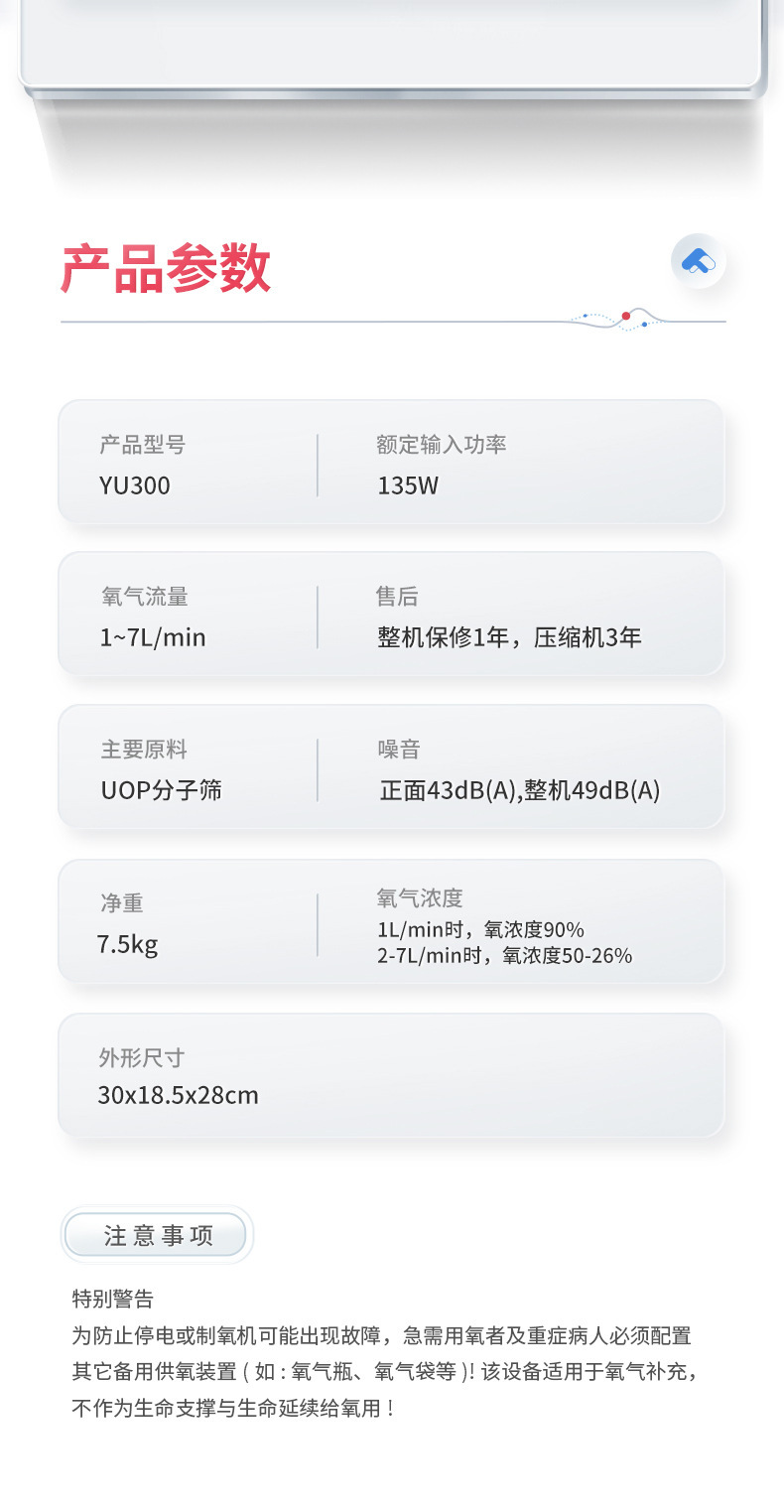 鱼跃(YUWELL) 1L升制氧机YU300老人孕妇学生家用保健吸氧机氧气机